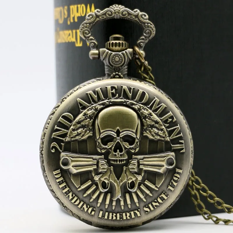 Relojes de bolsillo y de bolsillo - Joyería de calavera Steampunk retro de bronce antiguo Reloj de bolsillo analógico de segunda enmienda Relojes de cuarzo para hombres