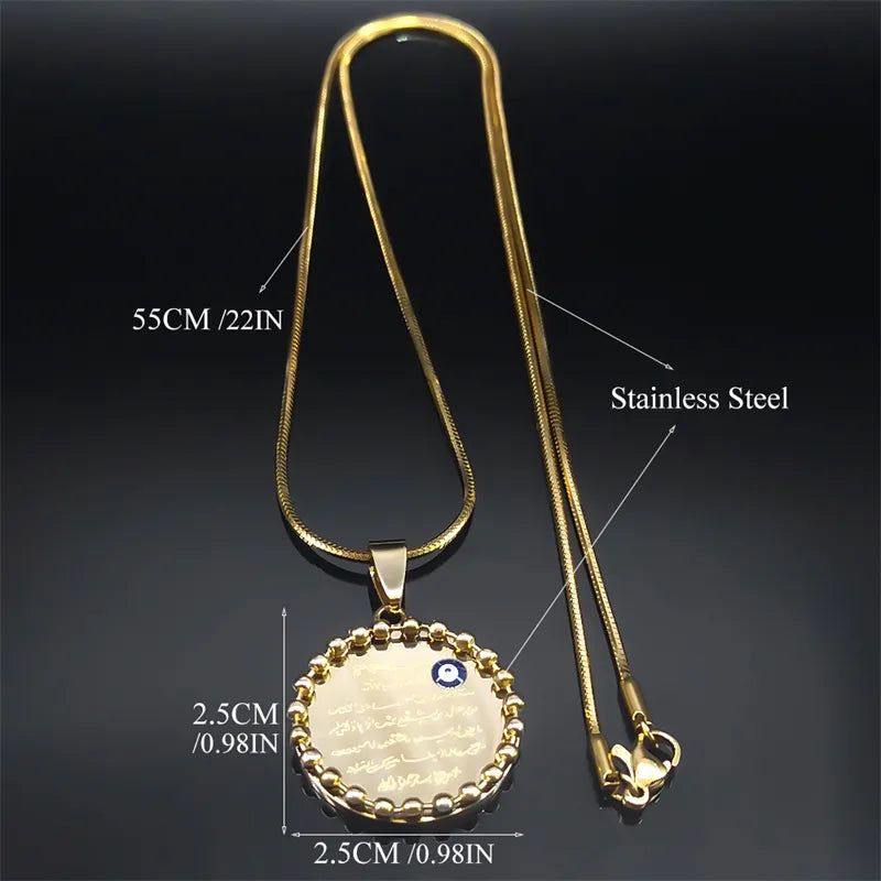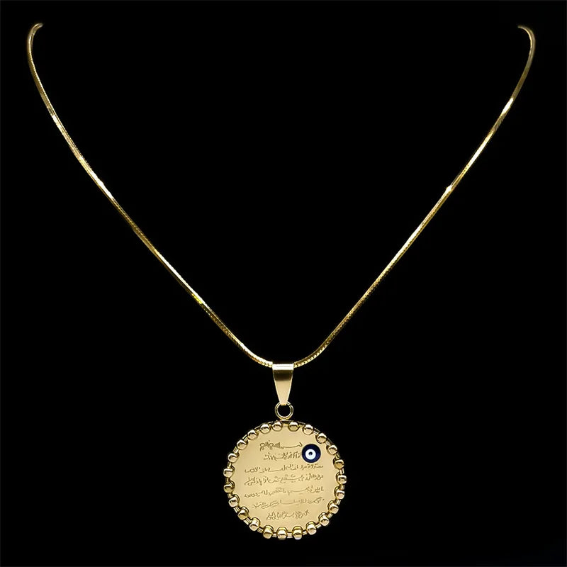Collar con colgante de Alá del Corán árabe para mujer y hombre, de acero inoxidable, color dorado, islámico, musulmán, con cadena de ojo azul malvado, joyería