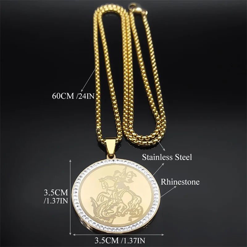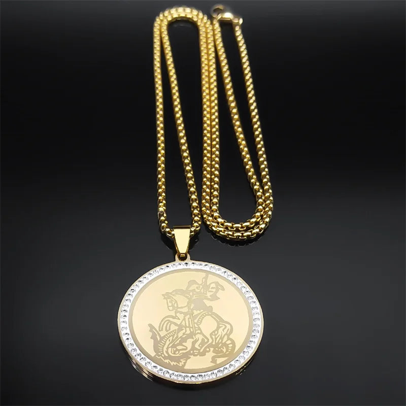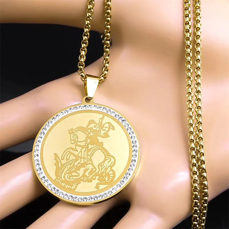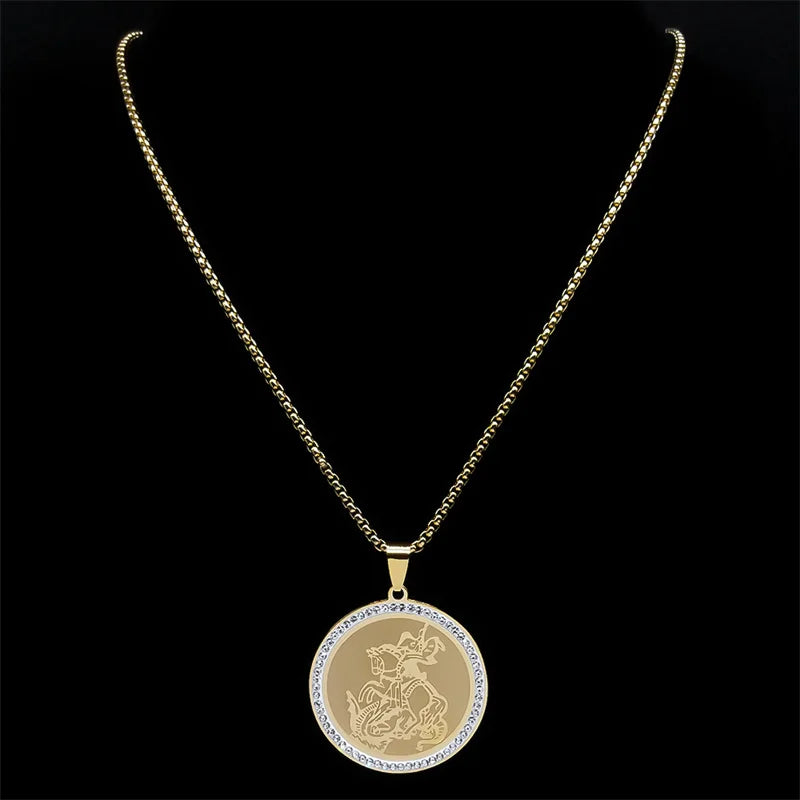 Collar de San Miguel Arcángel para mujer y hombre, de acero inoxidable, color dorado, cadena cristiana de santos, joyería masculina