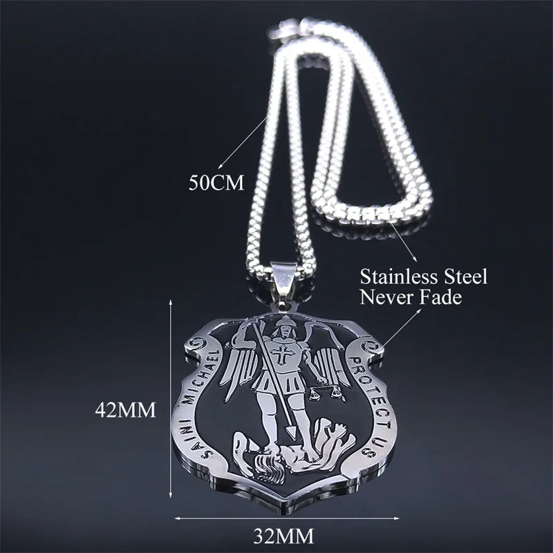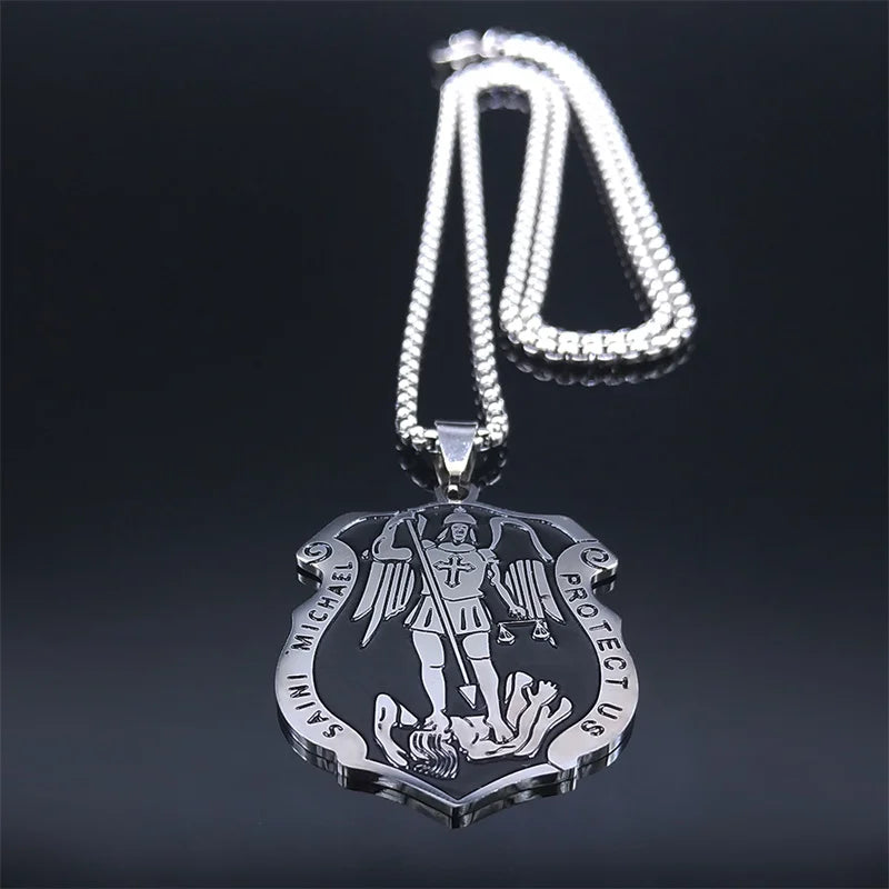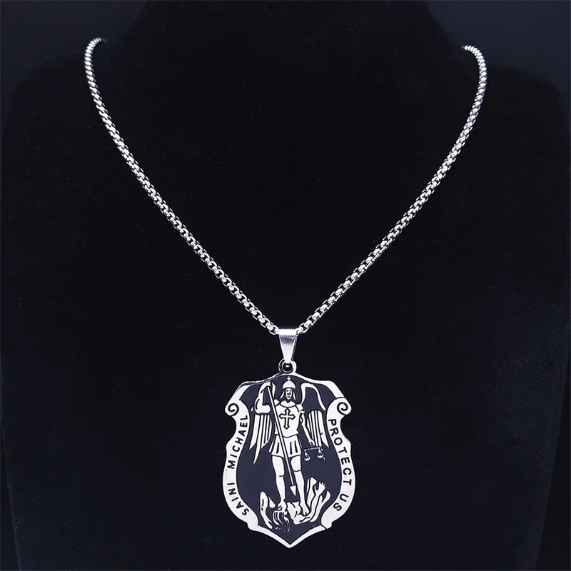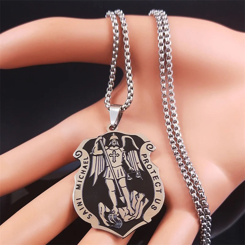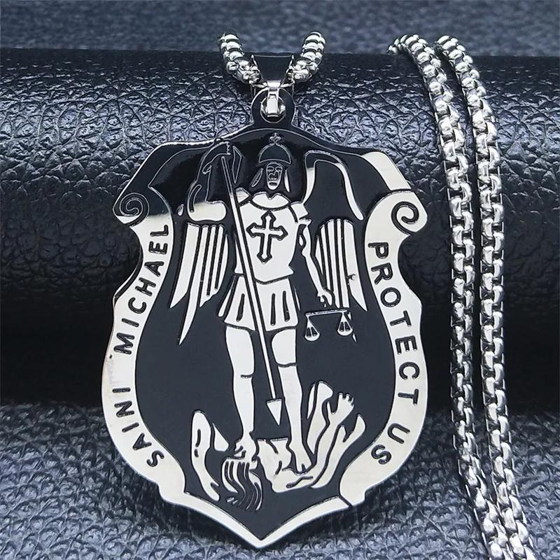 Collar de acero inoxidable con el Arcángel San Miguel, protector de mi santo escudo, gema protectora, amuleto ortodoxo, joyería