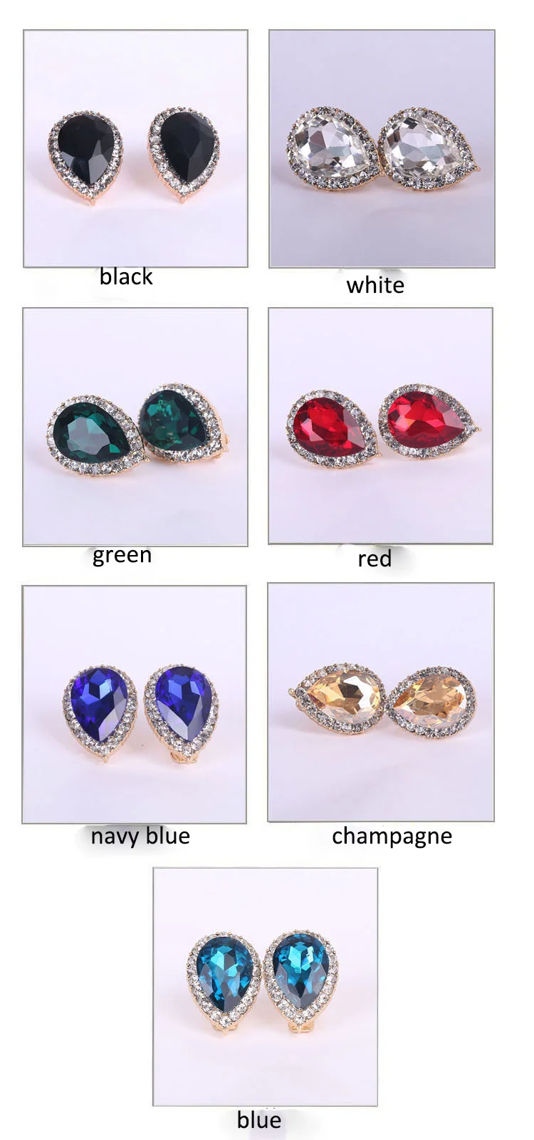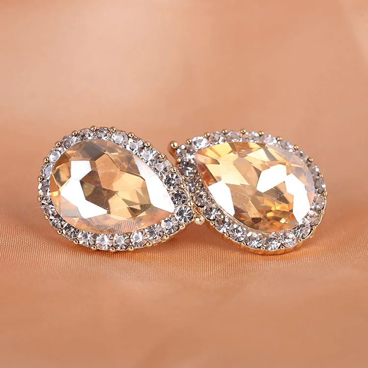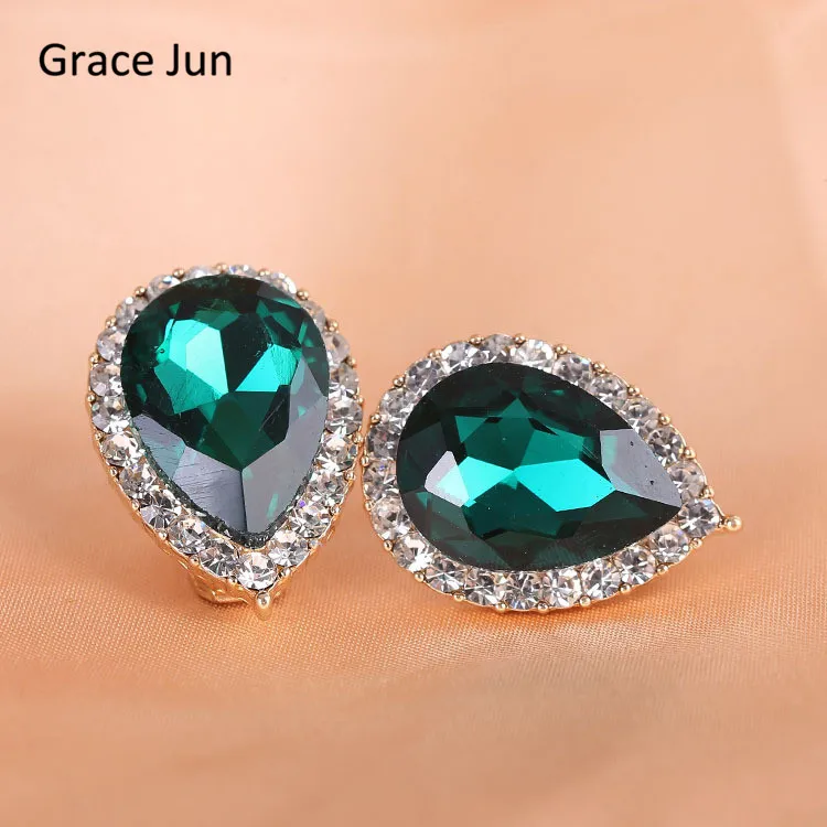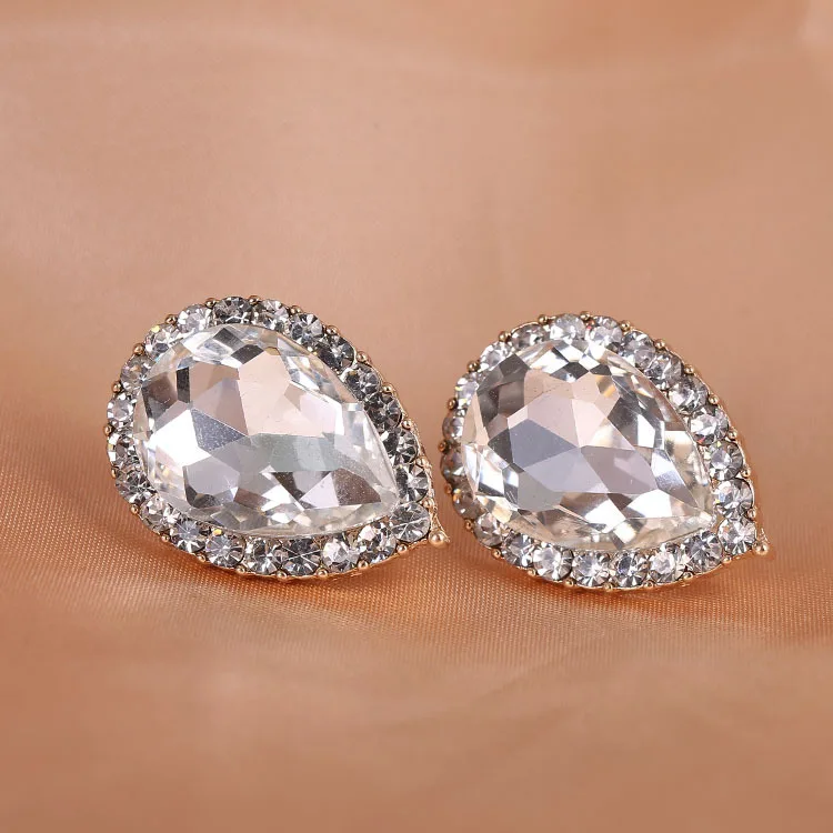 Pendientes de moda: pendientes de clip con forma de gota de agua de diamantes de imitación de cristal austriaco de alta calidad, sin perforaciones, con hebilla para la oreja para novias.