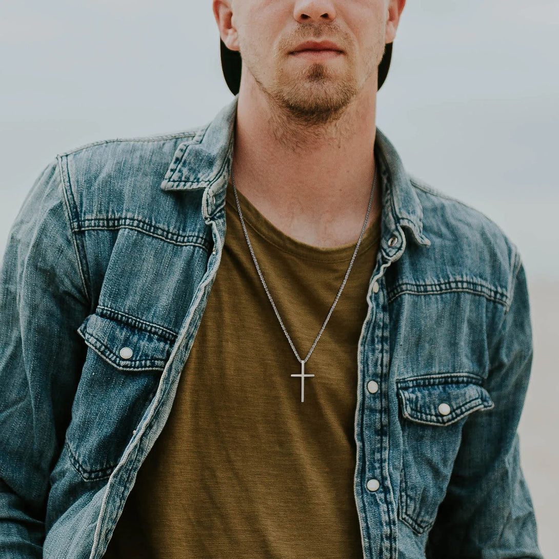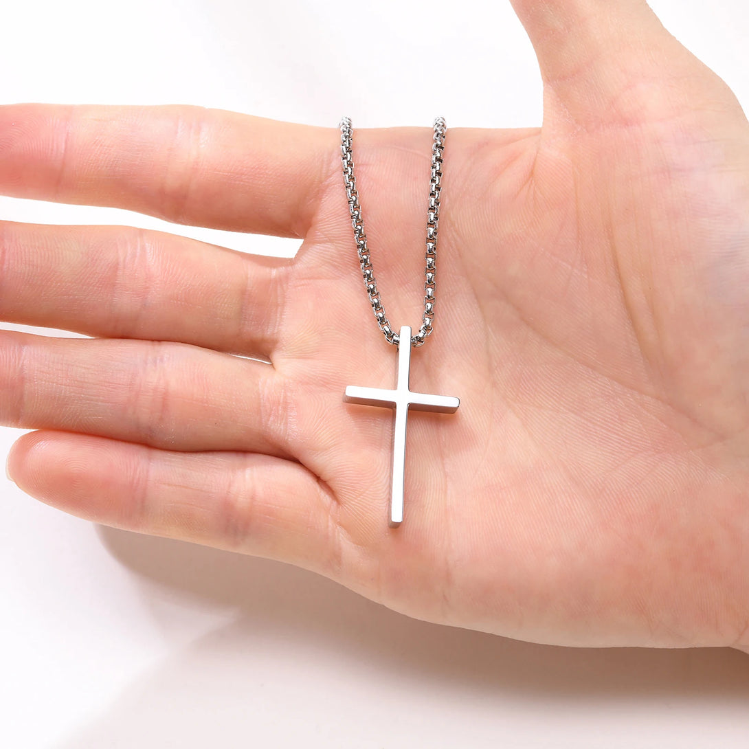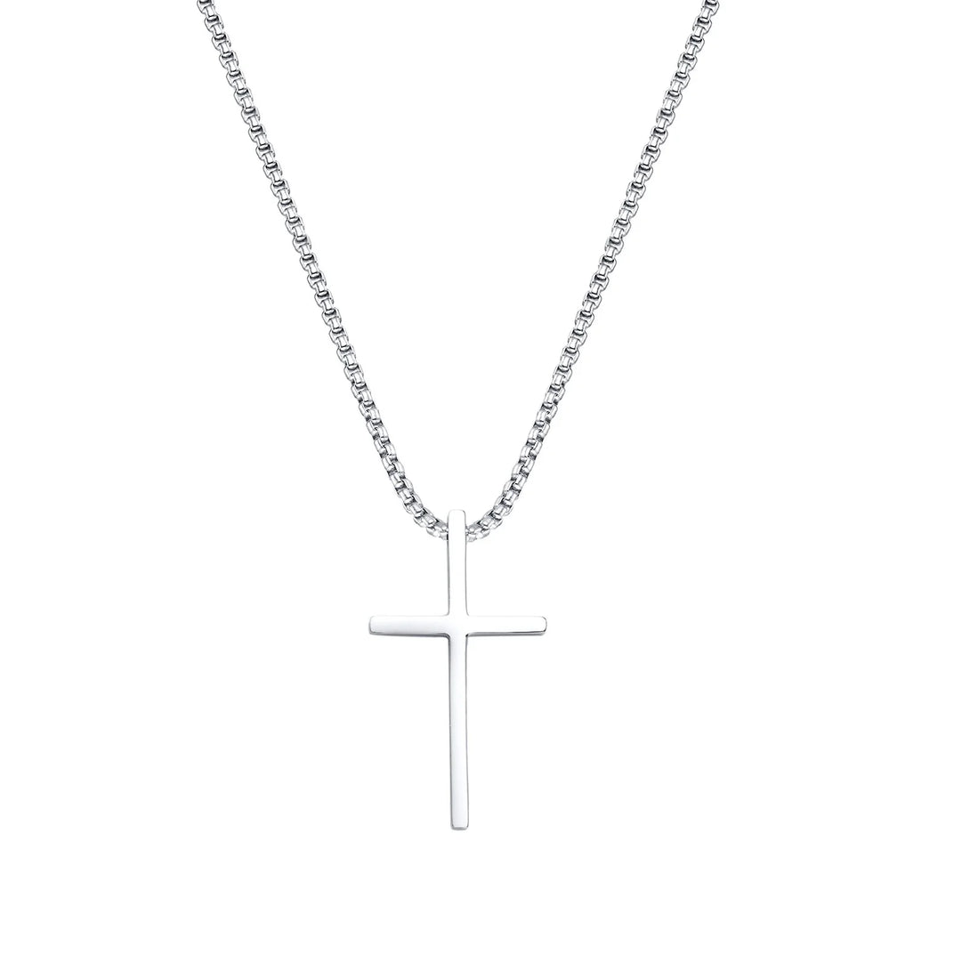 Collar de cruz simple y básico, colgante de cruz de acero inoxidable resistente al agua para hombre, regalo para hombre.