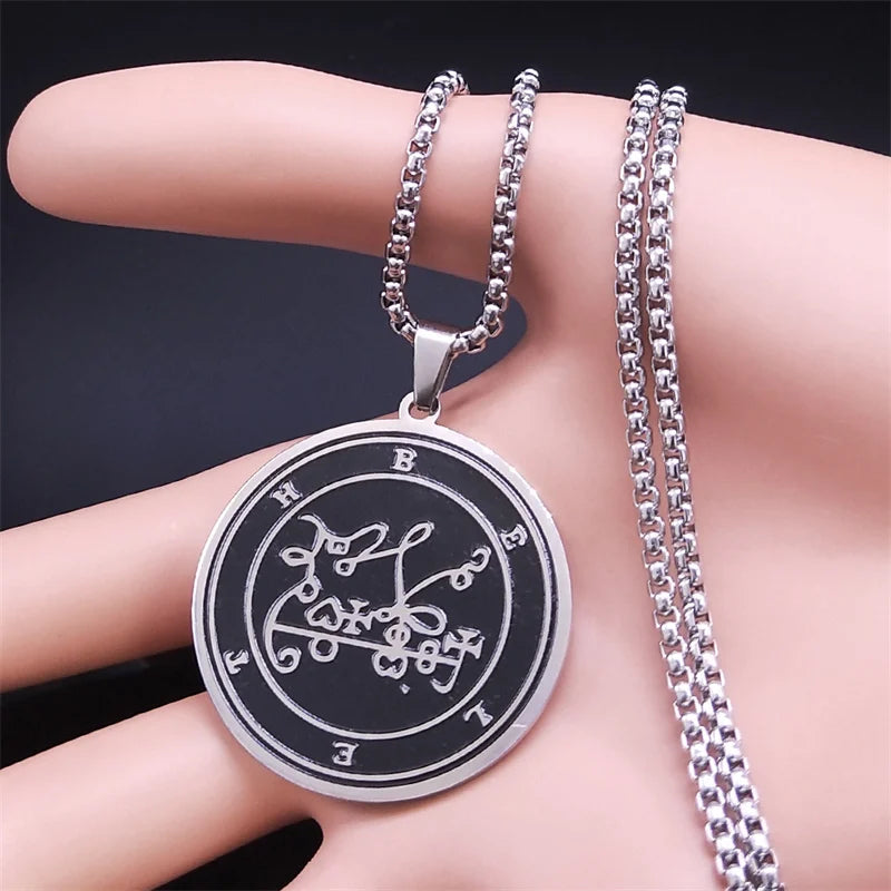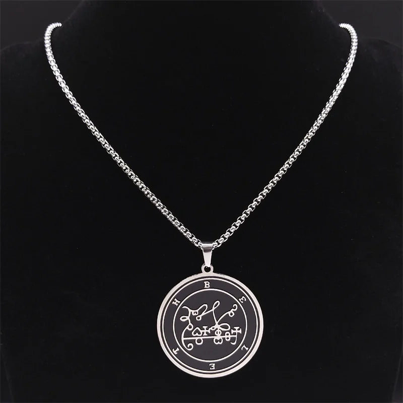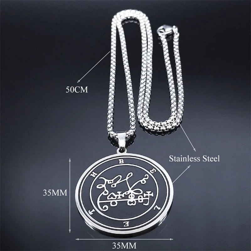 Collar pagano wiccano BELETH Sigil para mujer y hombre, de acero inoxidable, con el sello de la Llave de Salomón, joyería masculina