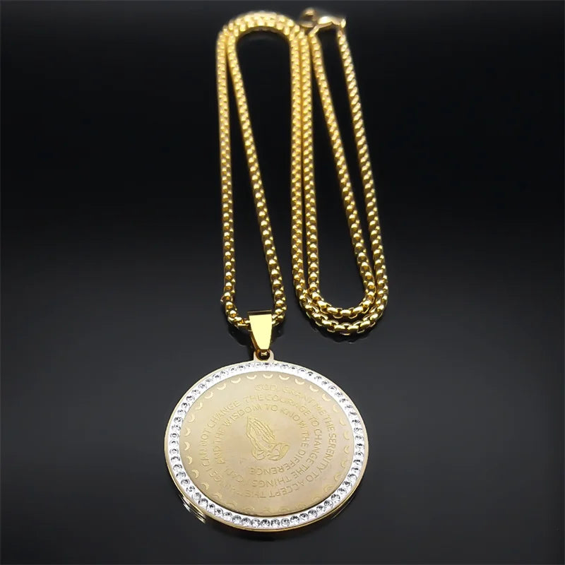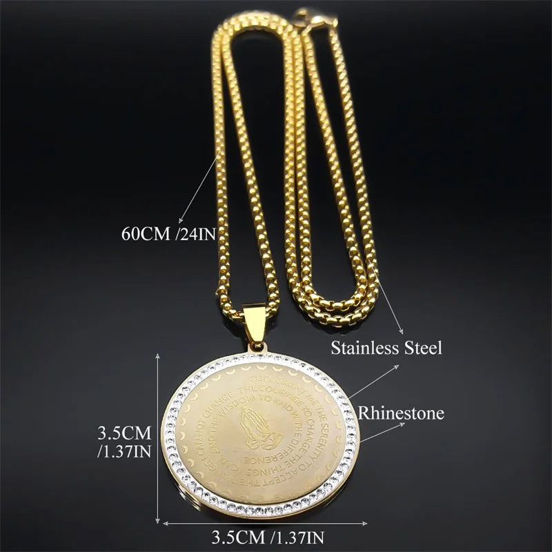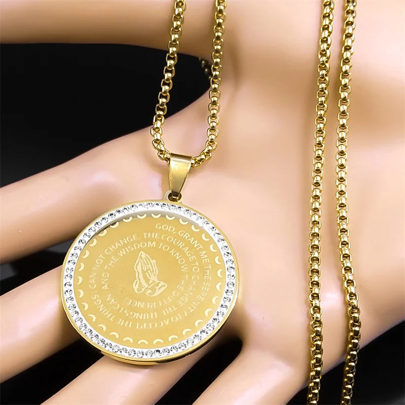 Collar con colgante de mano con oración de serenidad de los Señores de la Biblia en inglés para mujeres y hombres, cadena de bendición de acero inoxidable, joyería, collares
