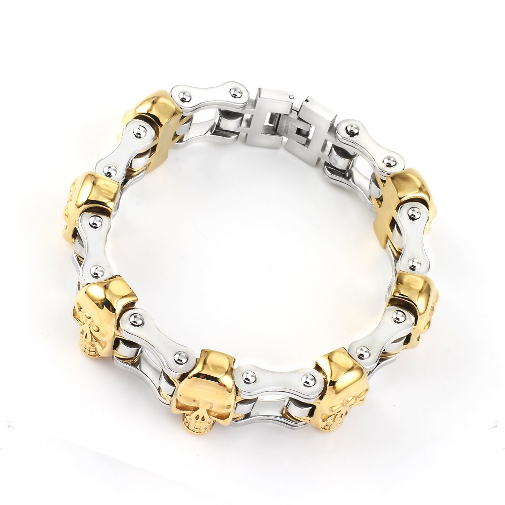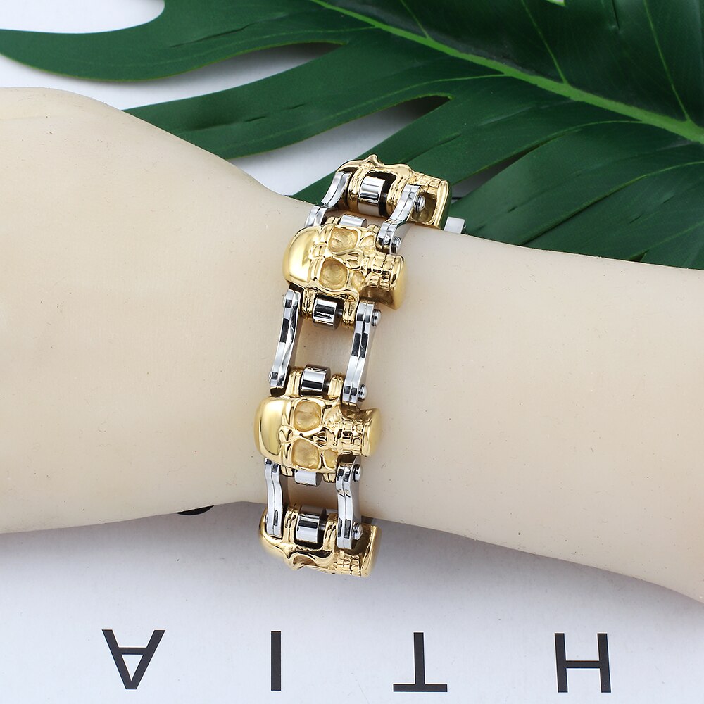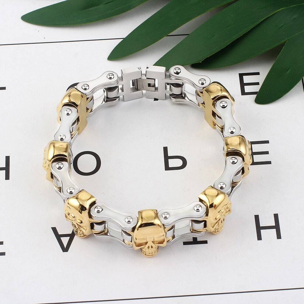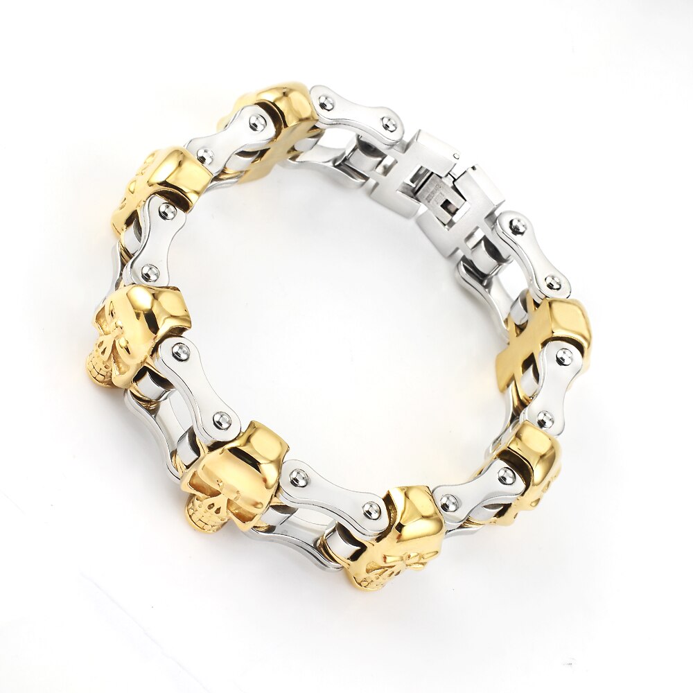 Pulsera de cadena de bicicleta para motocicleta para mujer/hombre, estilo punk, de acero inoxidable, color dorado y plateado, estilo motero, accesorios de joyería.