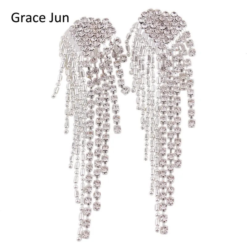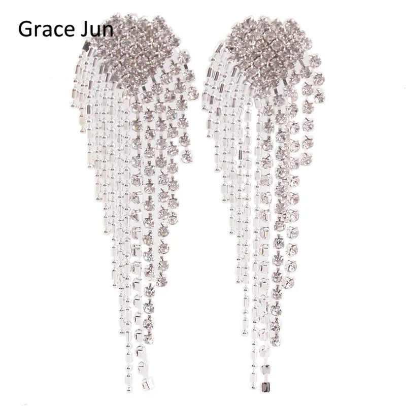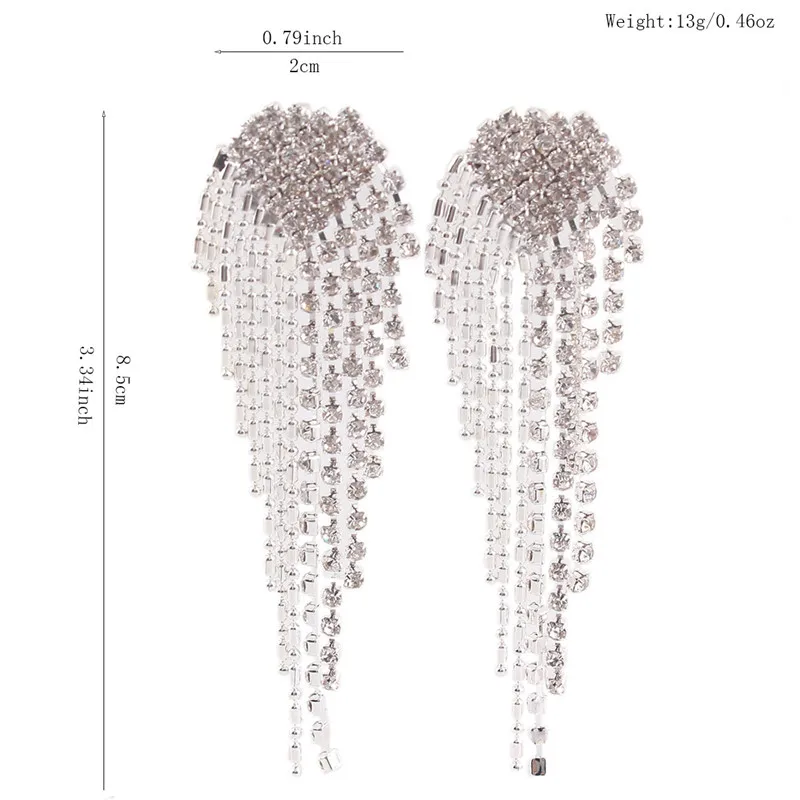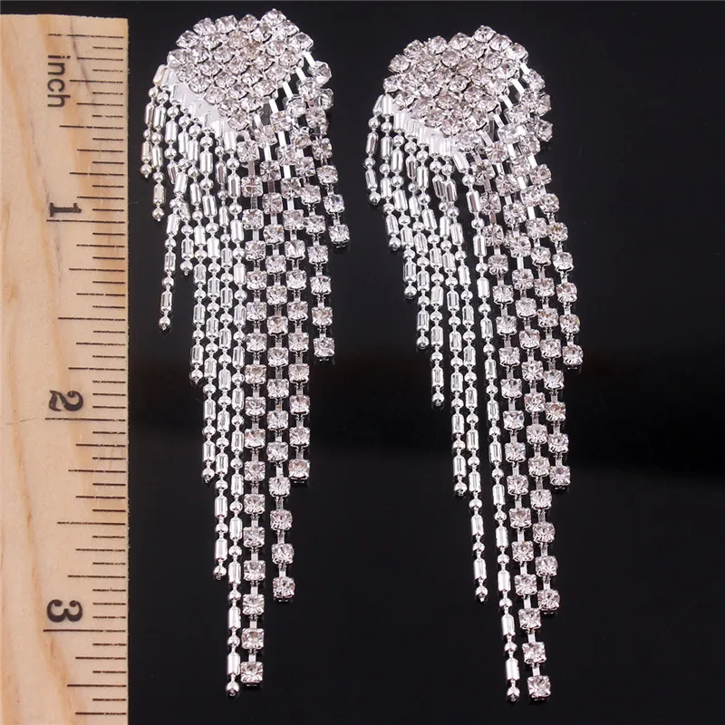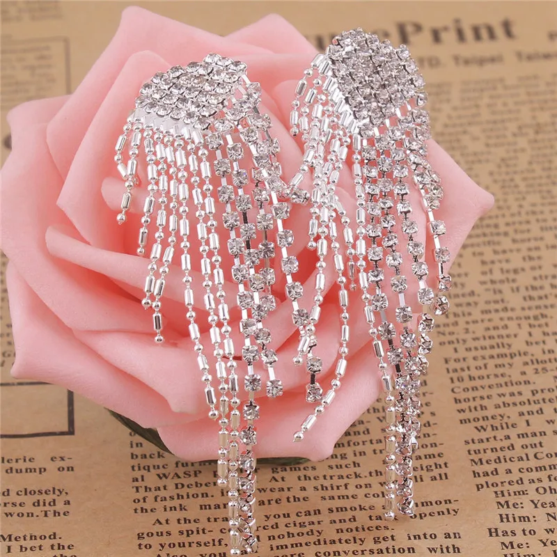 Adecuado para bodas, fiestas, clubes, desfiles y estos hermosos aretes con clip de diamantes de imitación plateados están incrustados con diamantes de imitación brillantes y son cómodos de usar, no necesitan aretes con orificios para las orejas de diseño único.