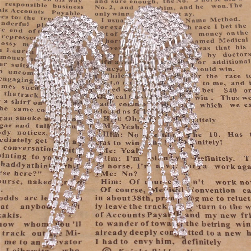 Pendientes de clip con borlas y diamantes de imitación en forma de corazón grandes, sin perforar