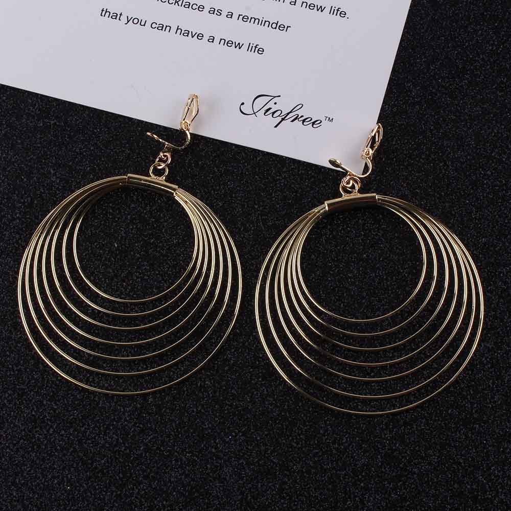 Pendientes de moda: grandes y nuevos, dorados, exquisitos, redondos, con clip, para mujer y niña, a la moda, sin agujero en la oreja, regalo de joyería.