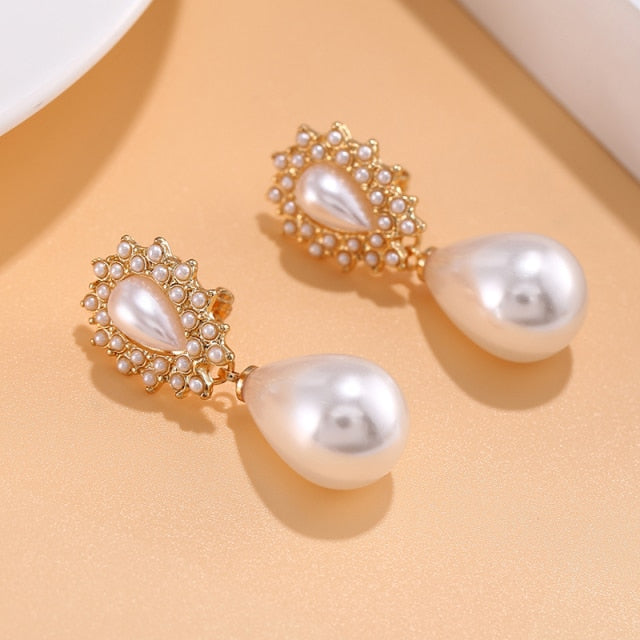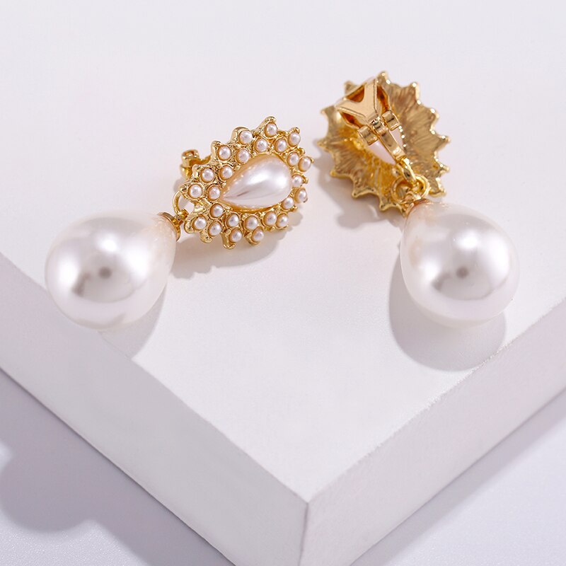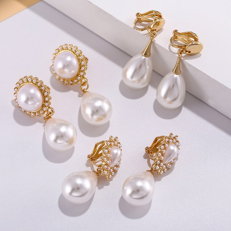 Pendientes de moda: clásicos, de alta calidad, con forma de gota de agua simulada, con clip de perla, sin perforar, para mujer, ideal como regalo para bodas o fiestas.