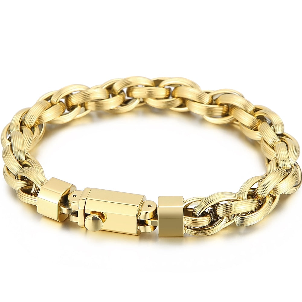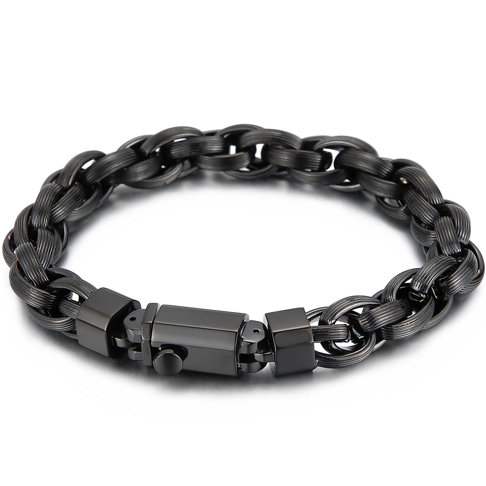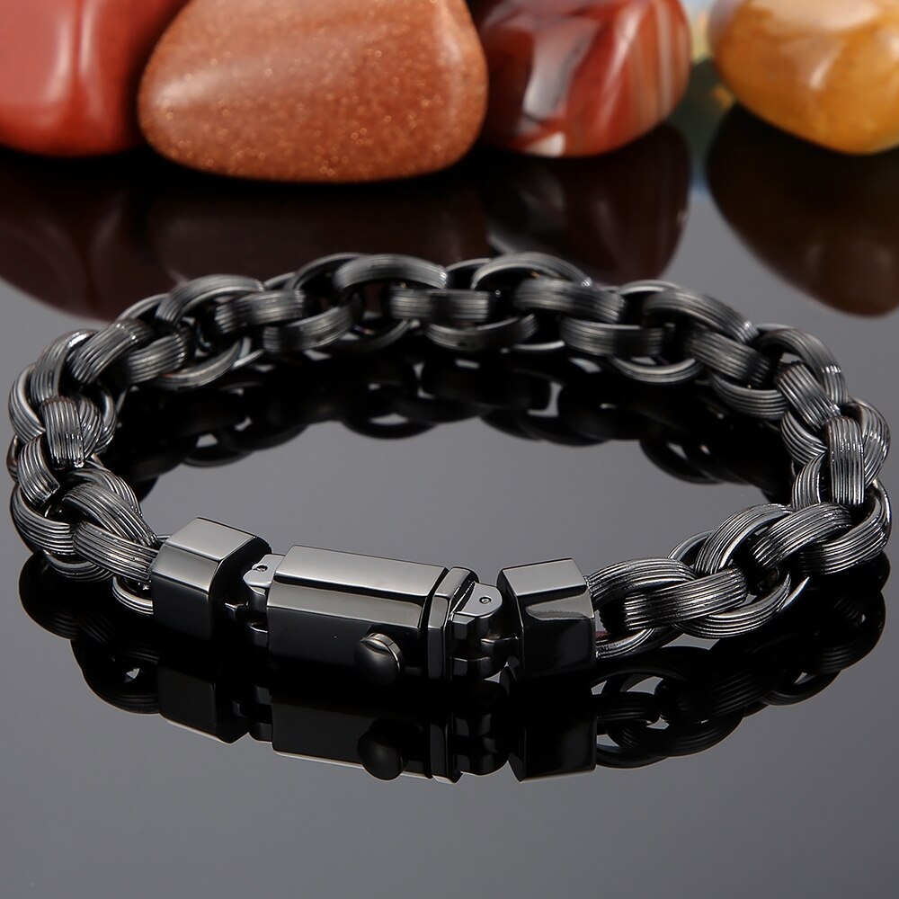 Pulsera de acero inoxidable chapada en oro negro de gran tamaño (21/23,5 cm) para hombre.