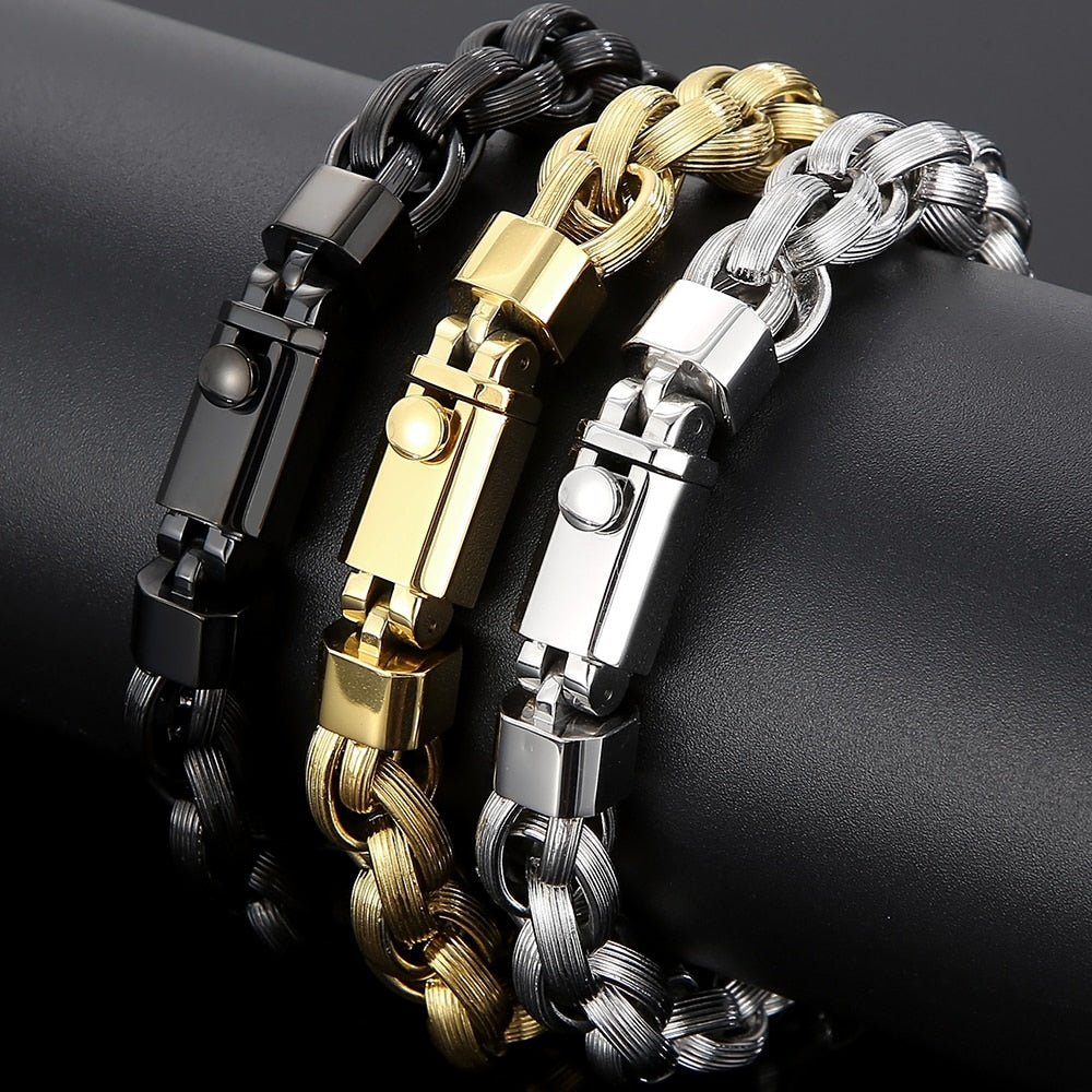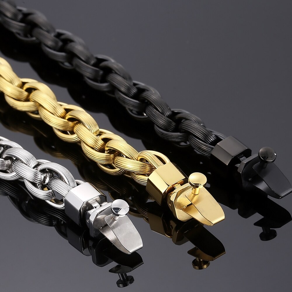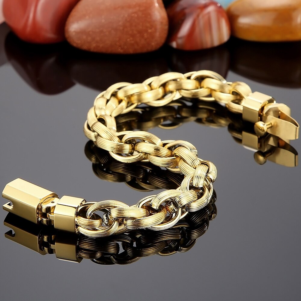 Pulsera de acero inoxidable chapada en oro negro de gran tamaño (21/23,5 cm) para hombre, accesorios de joyería.
