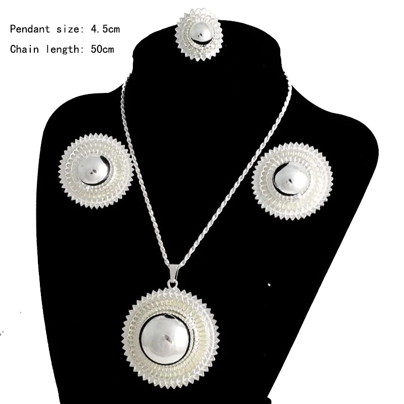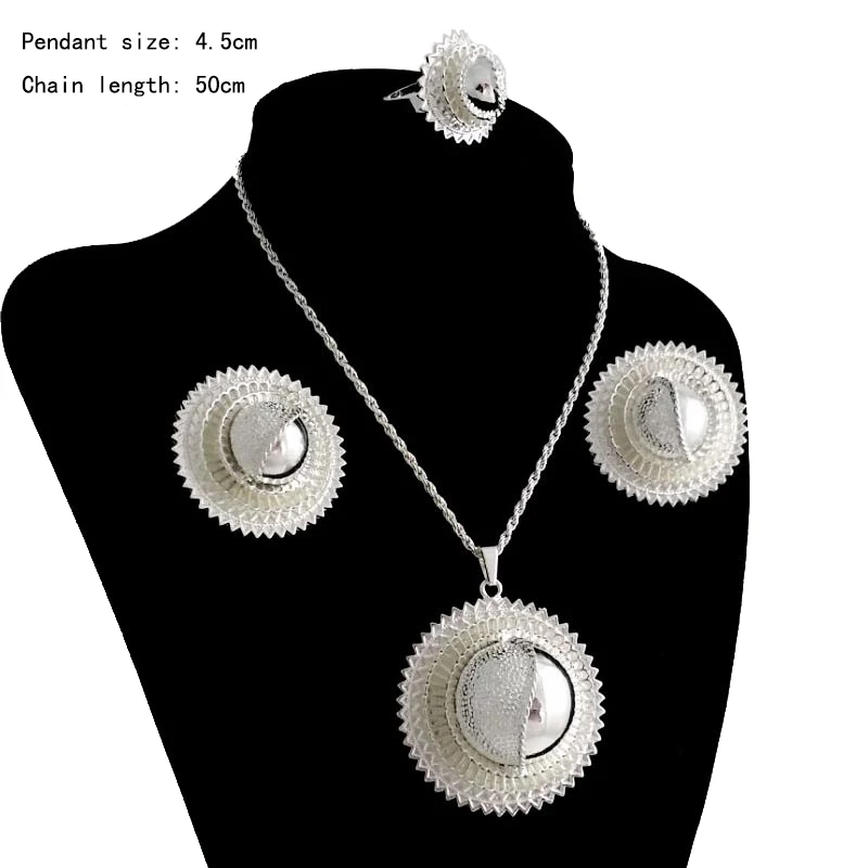 Conjuntos de joyas nupciales: conjuntos de joyas nupciales etíopes de gran tamaño para mujeres, conjuntos de color plata africano, Nigeria, Sudán, Eritrea, Kenia, regalo de boda