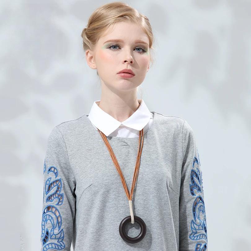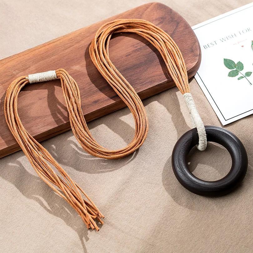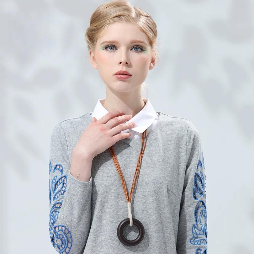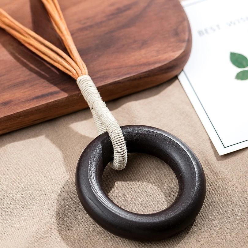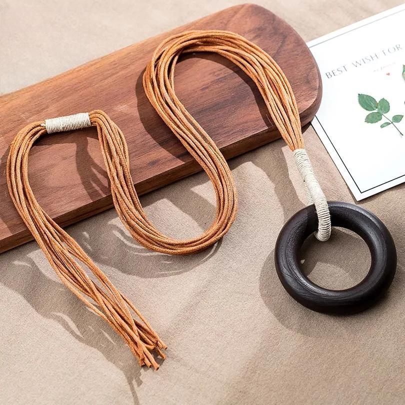 Collar circular de madera grande para mujer, colgante y collares, joyería llamativa, collar con colgante, suéter vintage, productos de Kpop de tendencia.