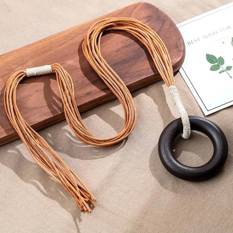 Collar grande de madera circular para mujer, colgante y collares, joyería llamativa, collar con colgante