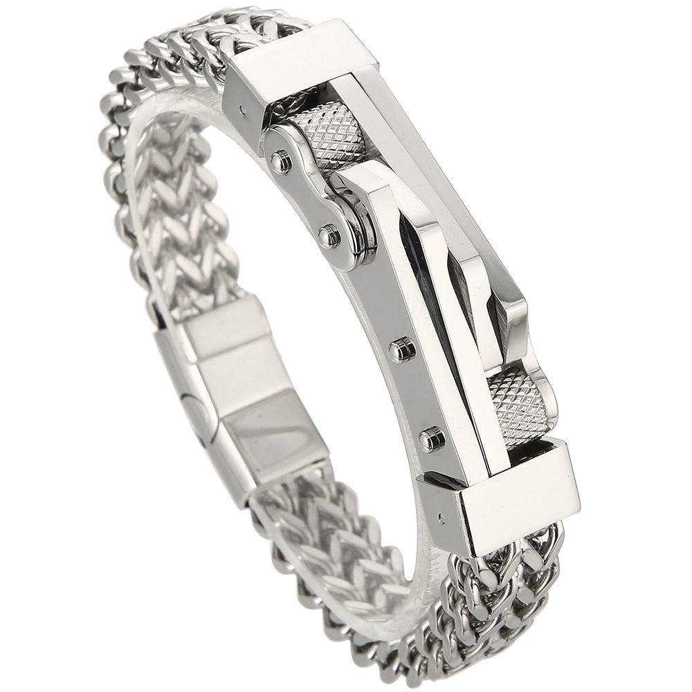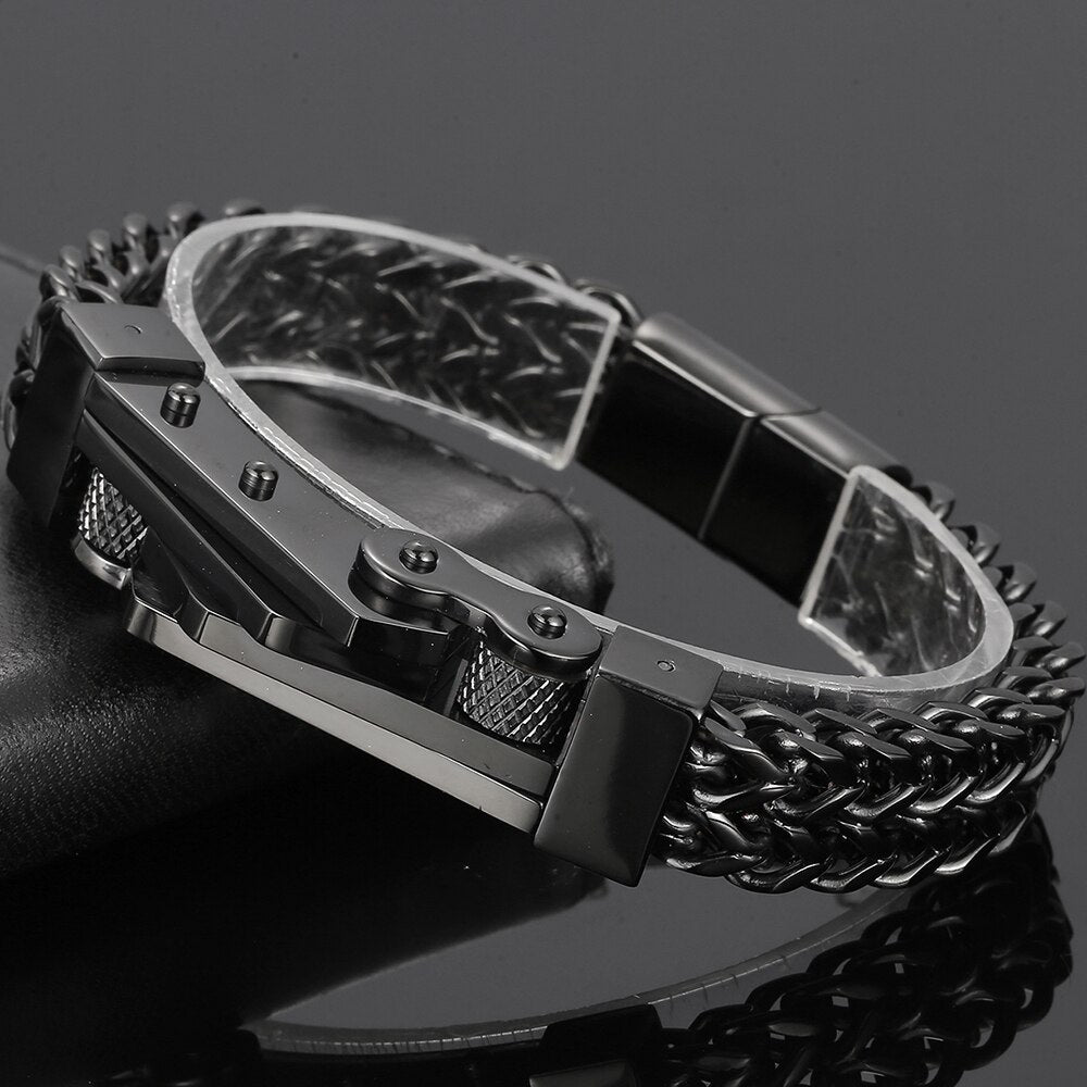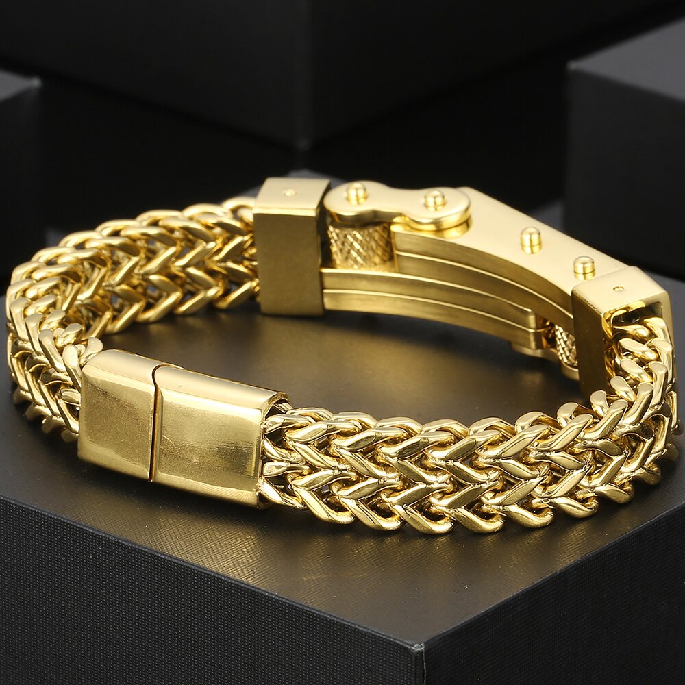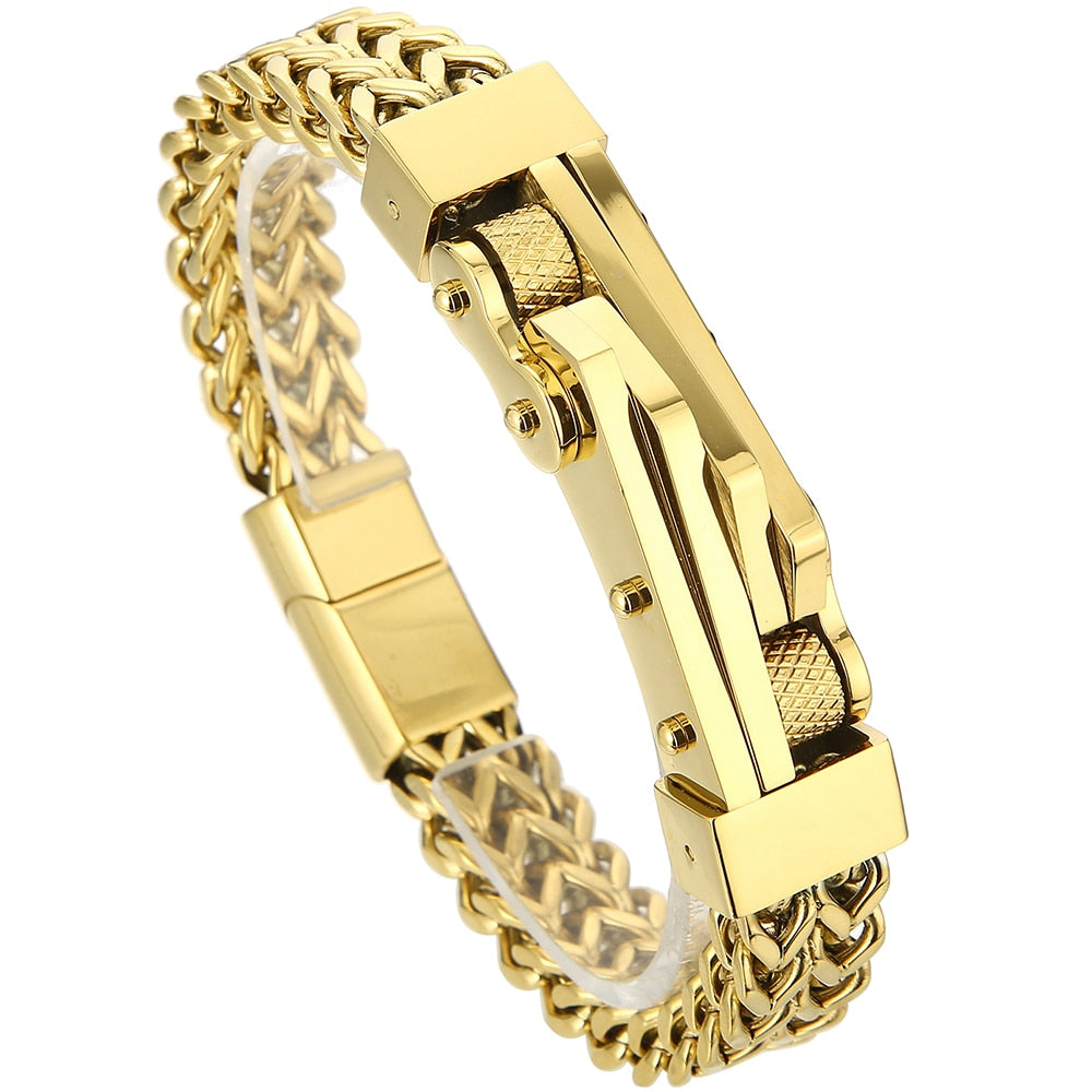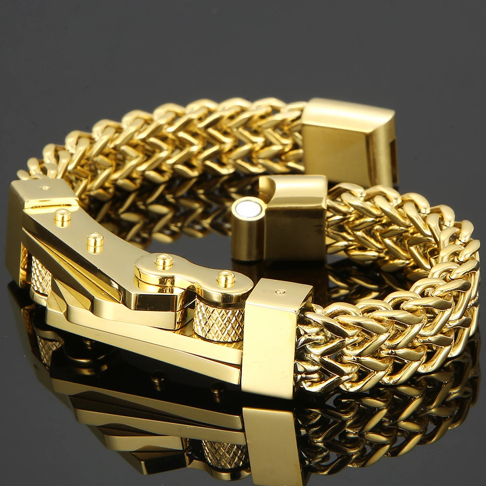 Pulsera de cadena de bicicleta para hombre, de acero inoxidable chapado en oro, con eslabones.