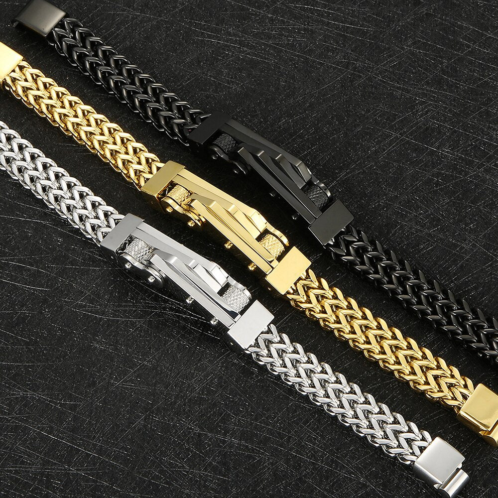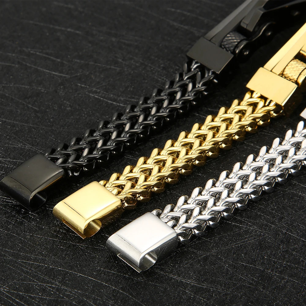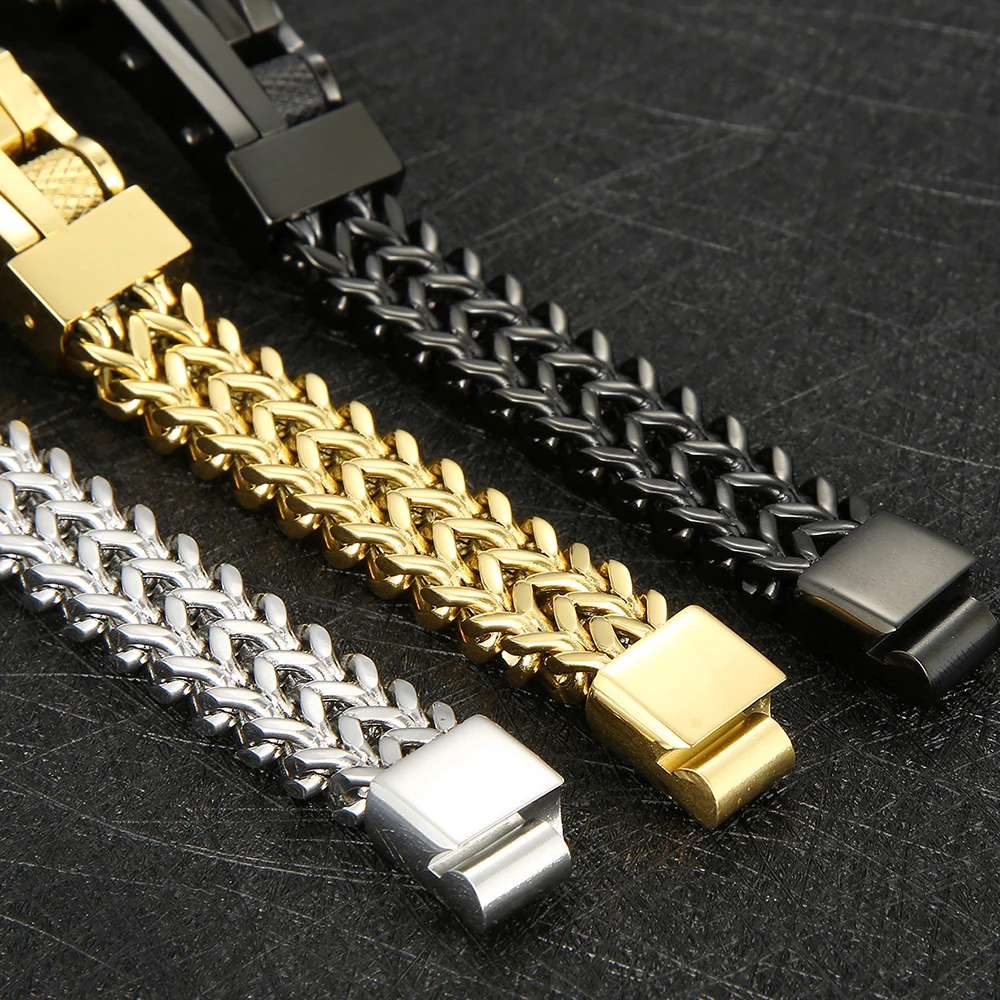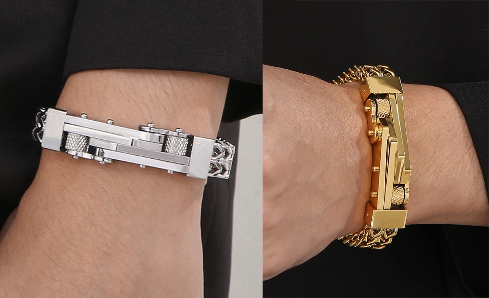 Pulsera de cadena de bicicleta para hombre, de acero inoxidable chapado en oro, con eslabones, para hombre, accesorios de joyería grabables.