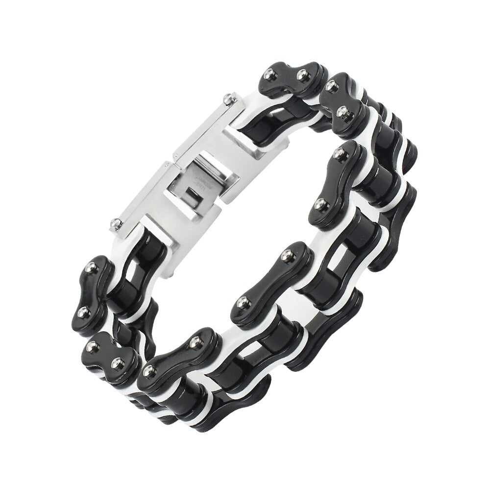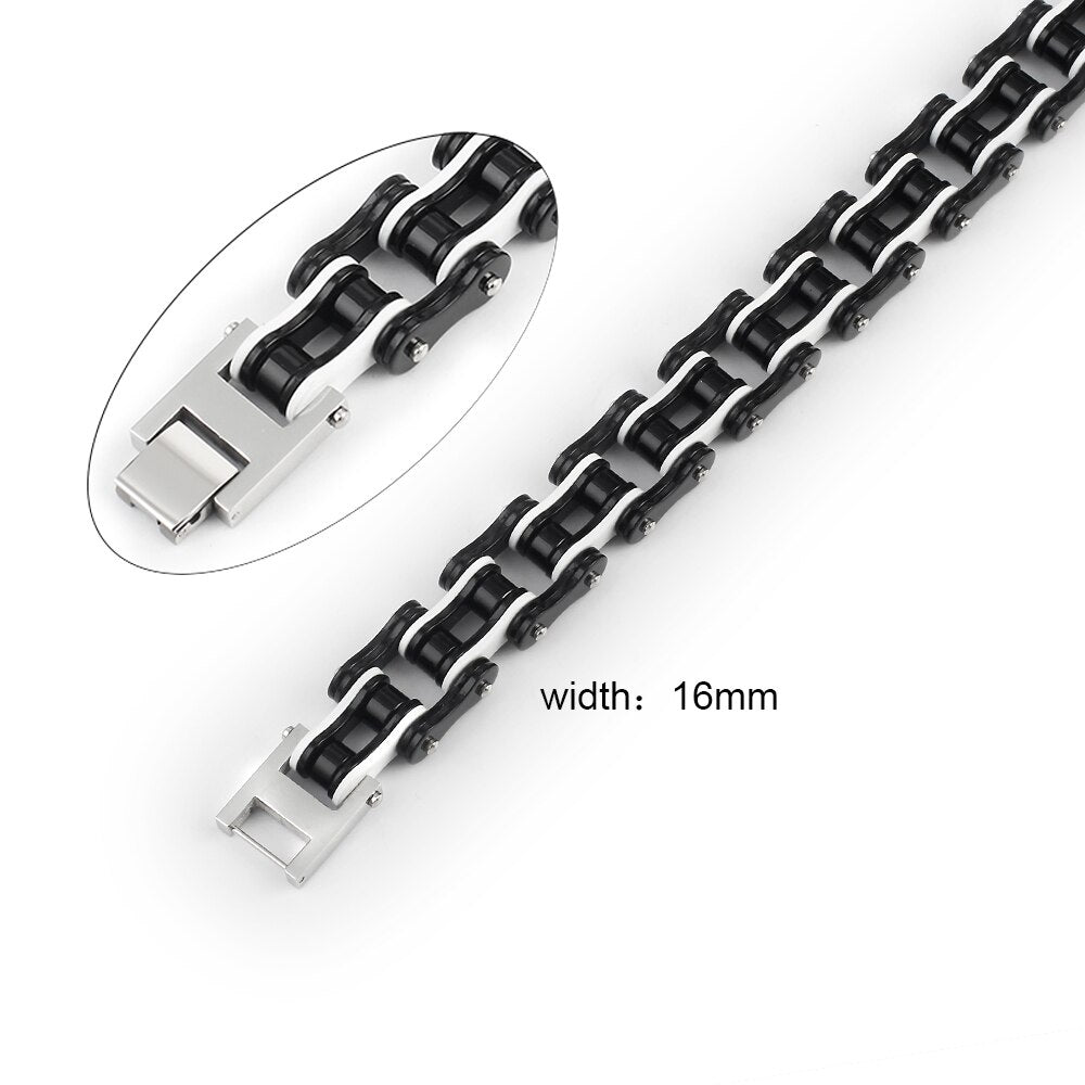 Pulsera de cadena de motocicleta para bicicleta de motociclista, brazalete de acero de titanio estilo punk rock, pulsera blanca y negra