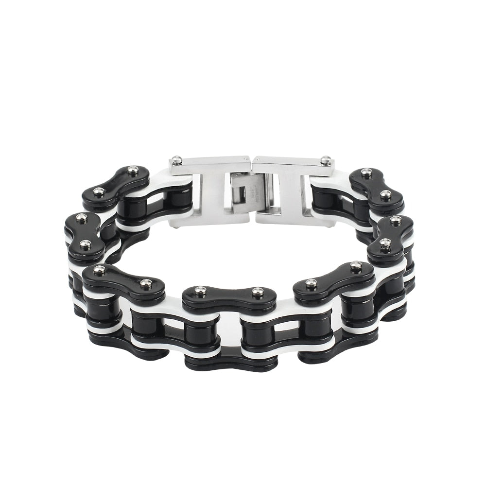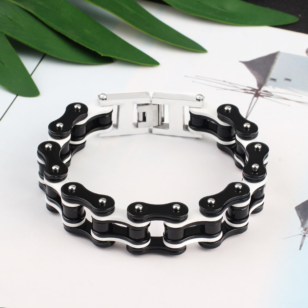 Pulsera de cadena de motocicleta para bicicleta de motociclista, brazalete punk rock de acero de titanio, pulsera blanca y negra, accesorios para hombres y mujeres