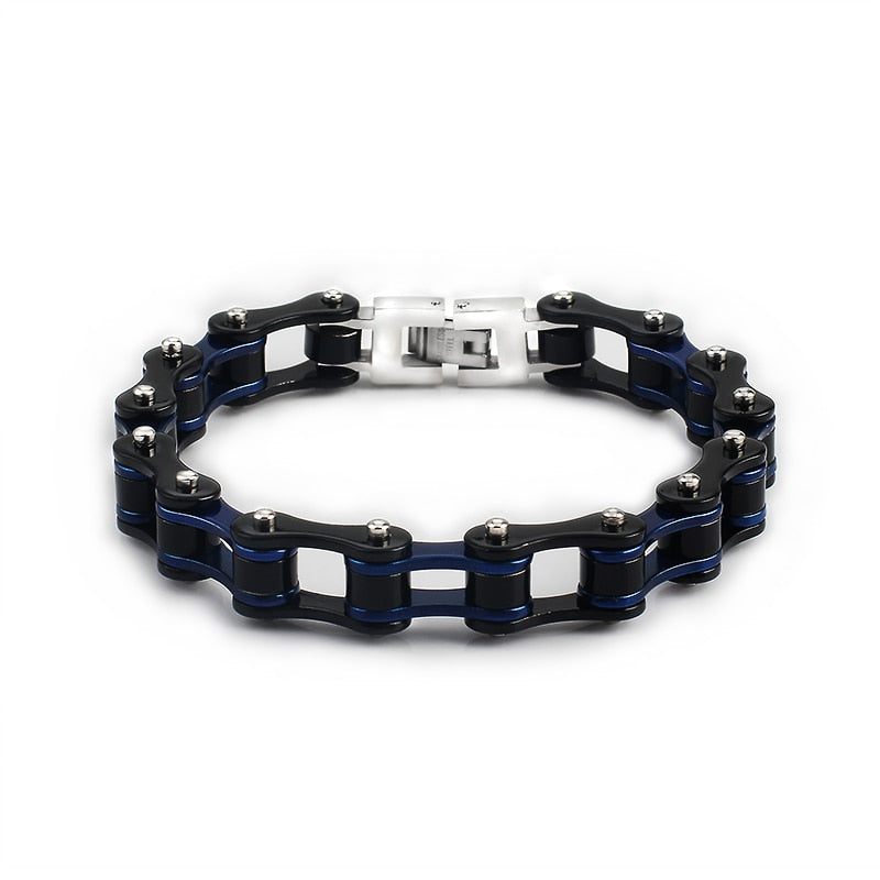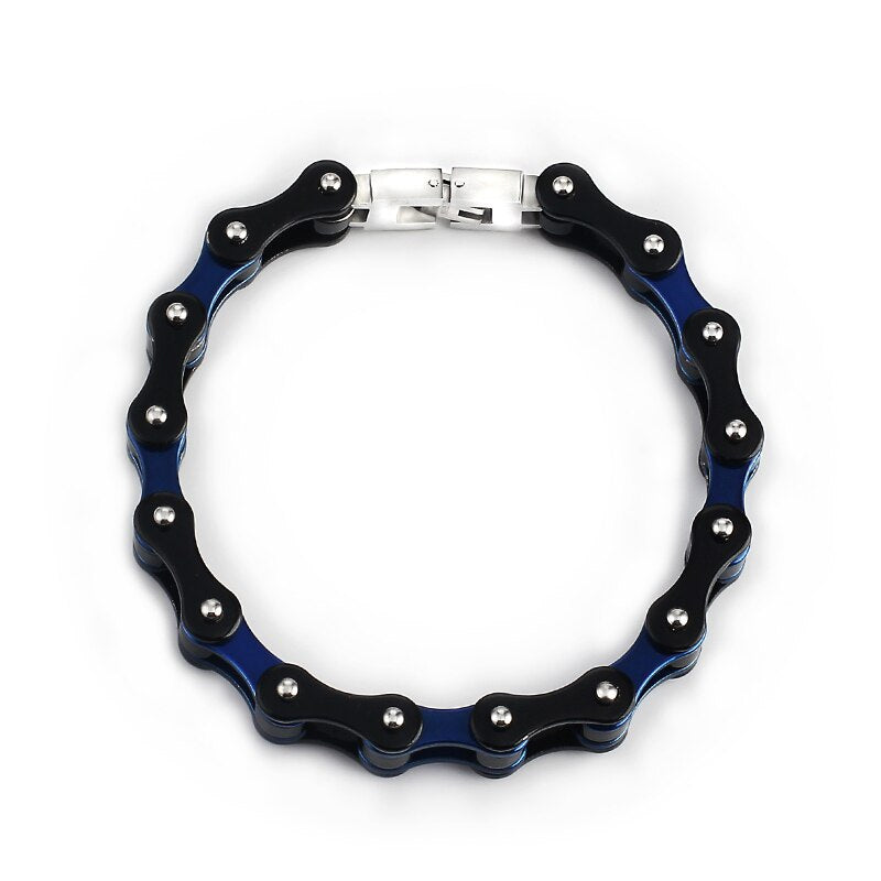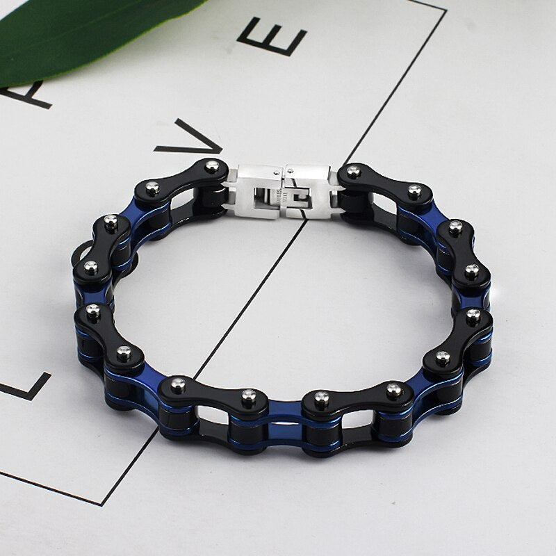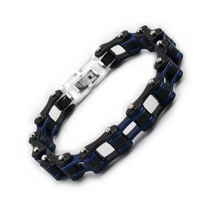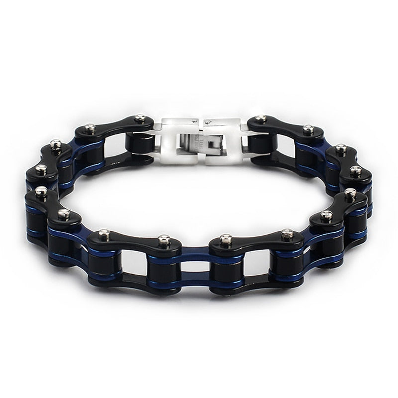 Pulsera de motociclista para hombre, estilo punk rock, de acero inoxidable 316L, joyería de moda, pulsera y brazalete de cadena de bicicleta, joyería en color azul y negro.