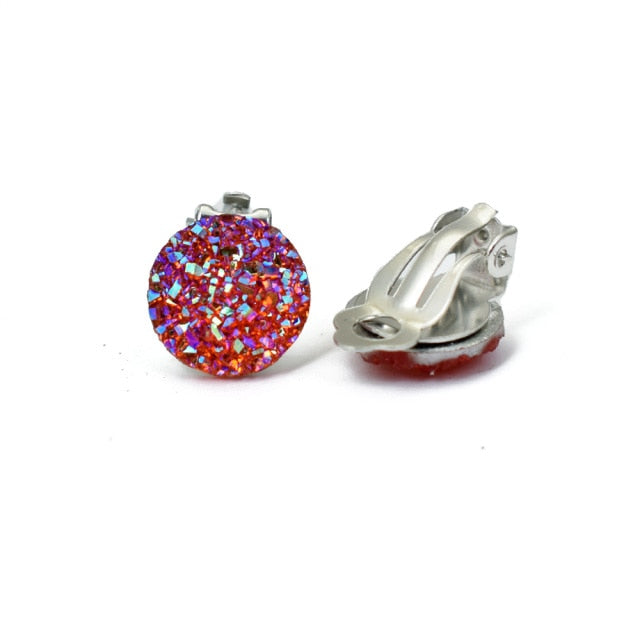 Pendientes de clip de resina redondos geométricos de color plateado Bing Tu sin orificio para la oreja
