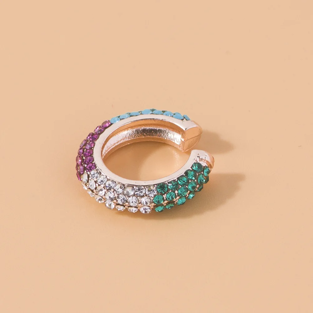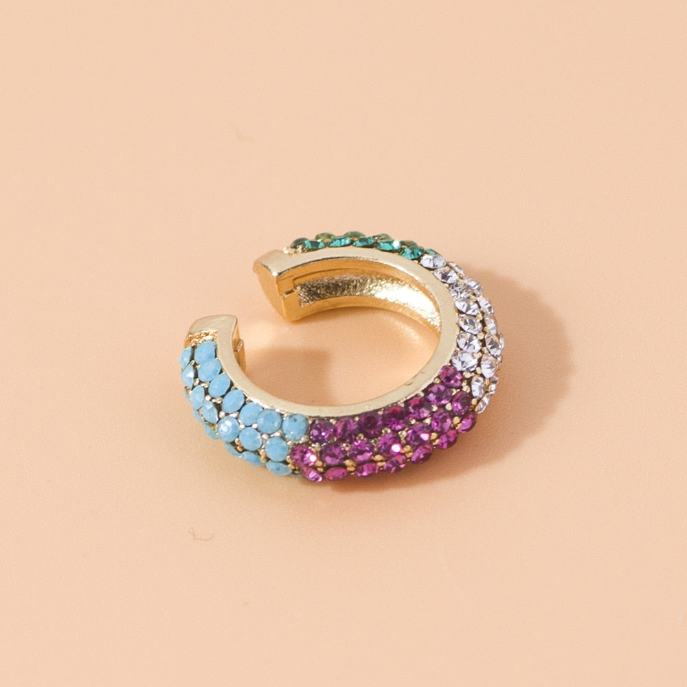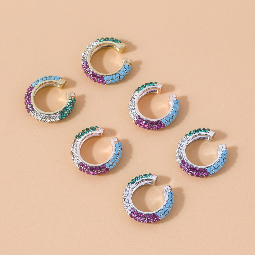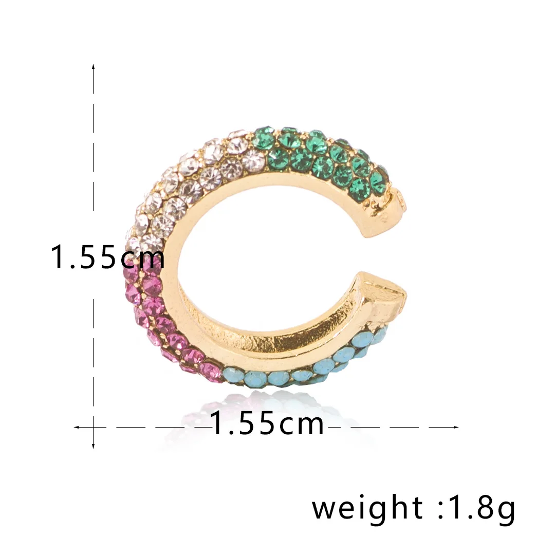 Pendientes de moda: aretes bohemios de cristal para mujer, multicolores, en forma de C, pequeños, sin perforar, para novia, boda, joyería con clip.