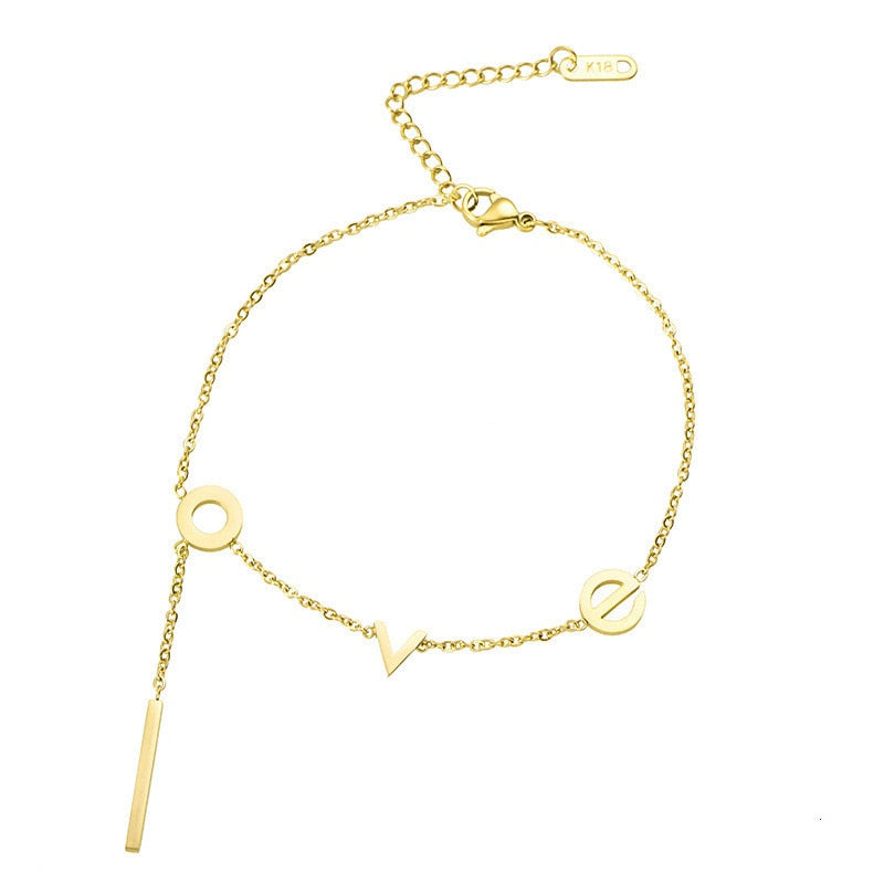Tobillera de acero inoxidable 316L con letras bohemias y letras de amor para mujer, accesorio para el pie, sandalias descalzas de playa de verano, para el tobillo.
