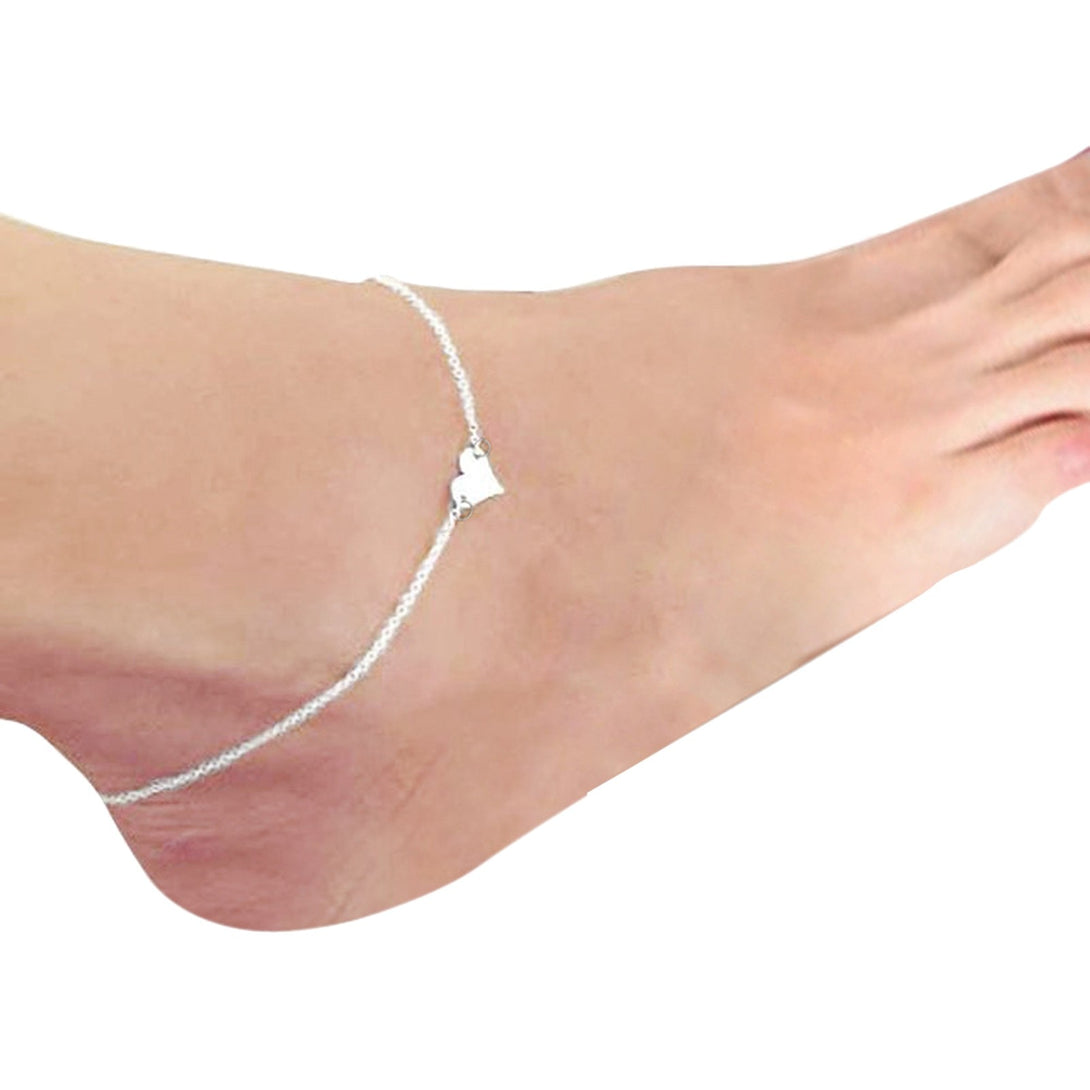 Tobilleras - Tobillera Bohemia de Plata para Pierna, Tobilleras de Moda con Forma de Corazón para Mujer, Cadena para Pierna, Joya para Pies de Playa