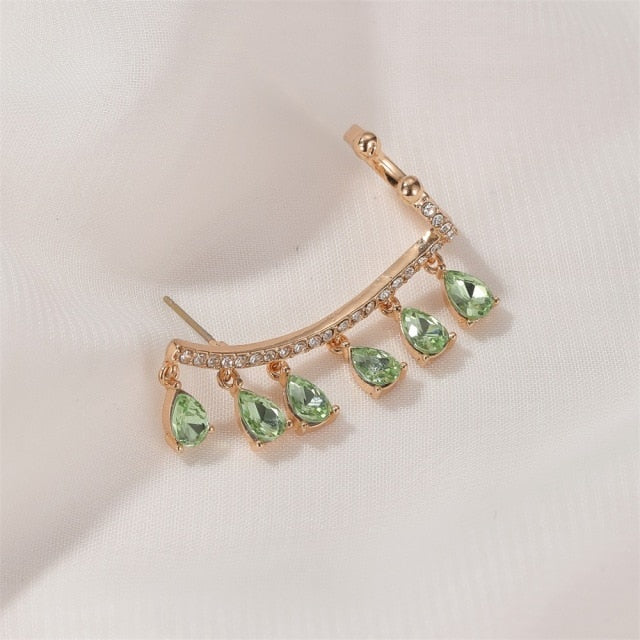 Pendientes de clip con forma de gota de agua y cristales de imitación de estilo bohemio para mujer