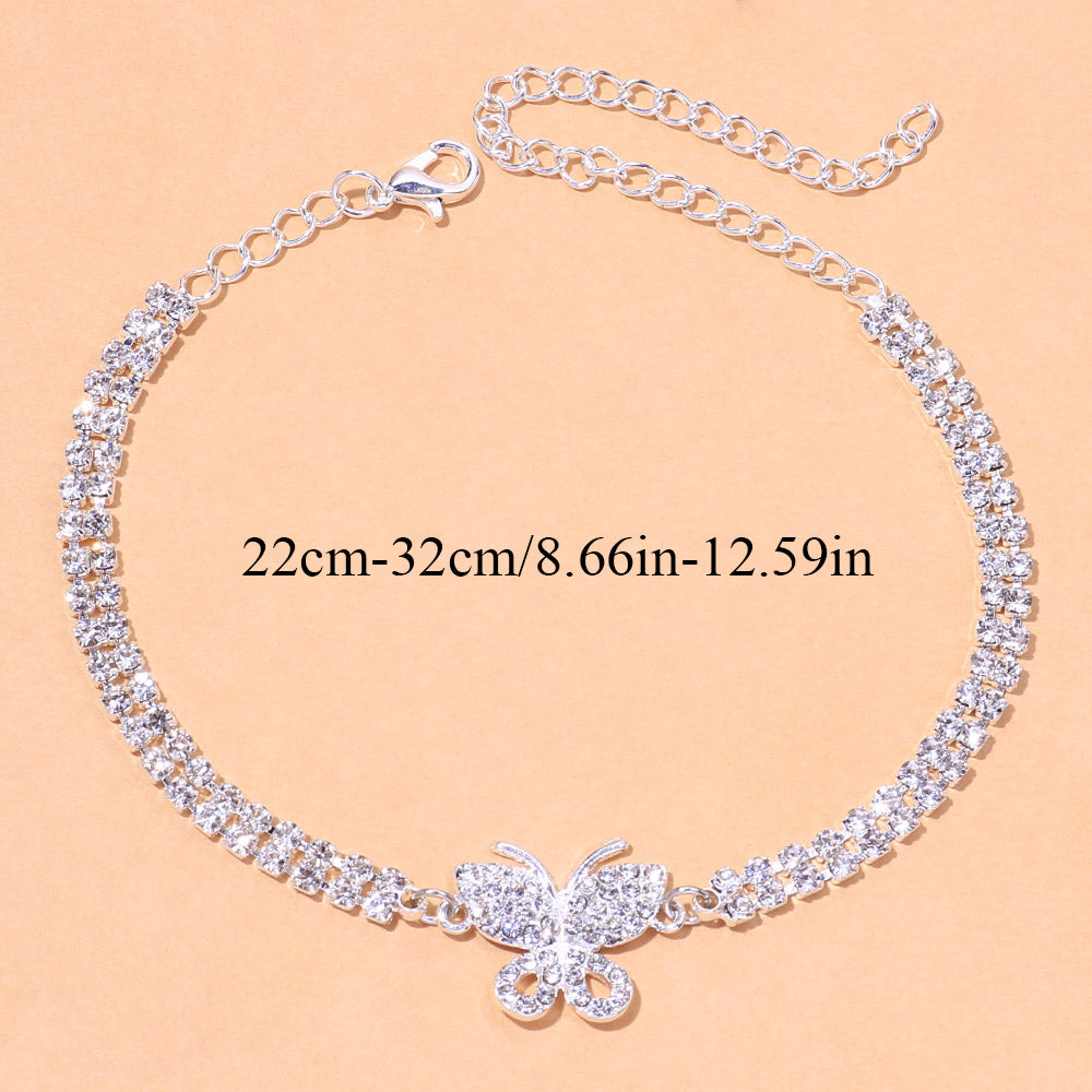 Tobilleras bohemias con diseño de mariposa y diamantes de imitación para mujer, cadena de tenis de cristal para verano, pulsera de tobillo, joyería de moda