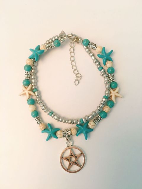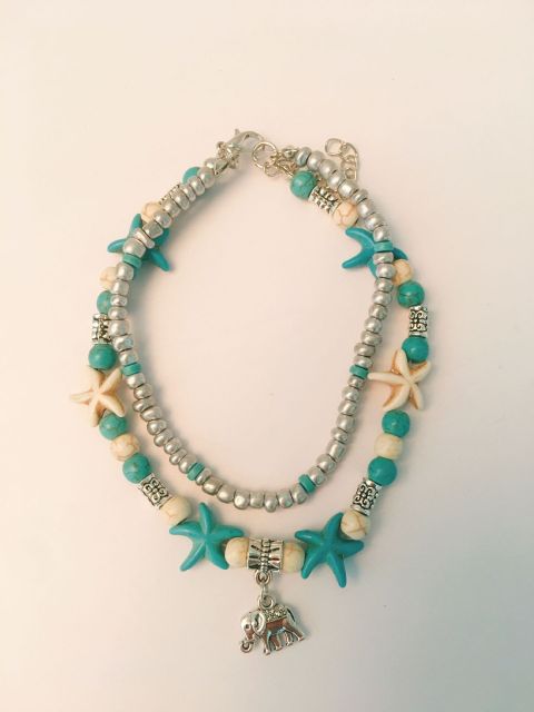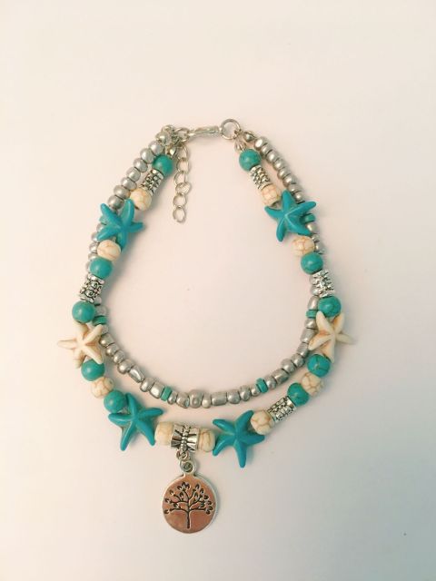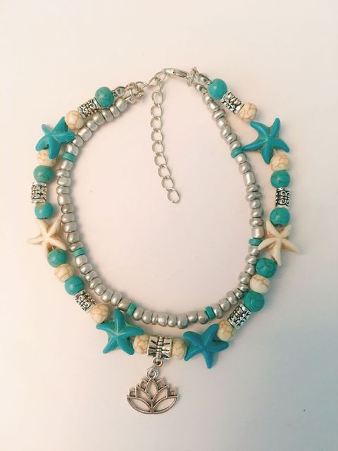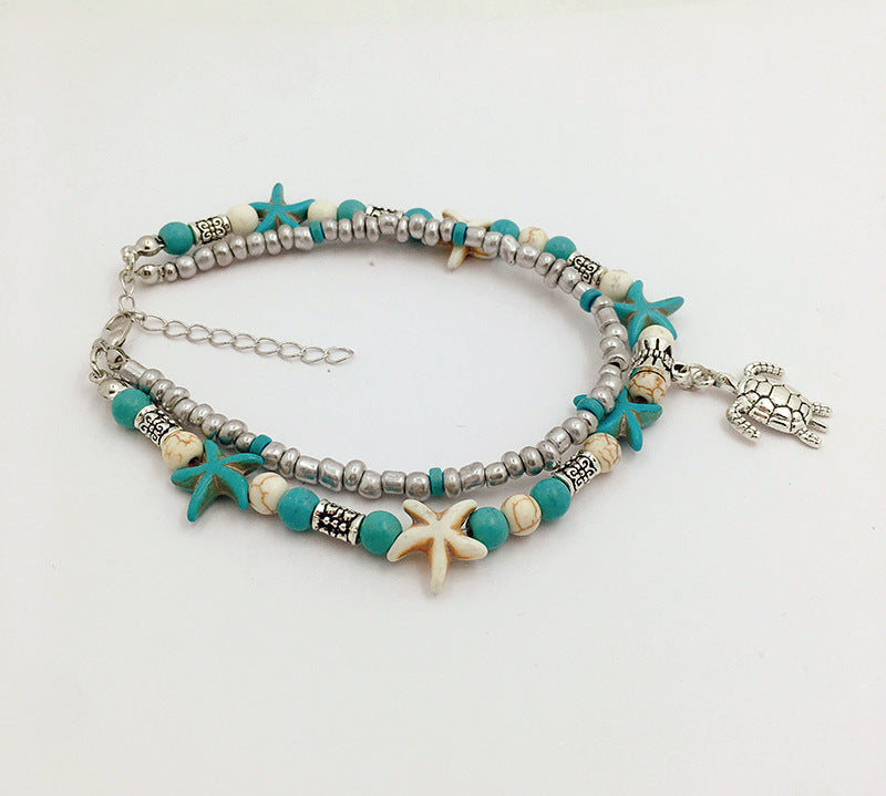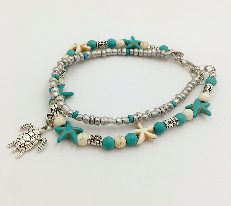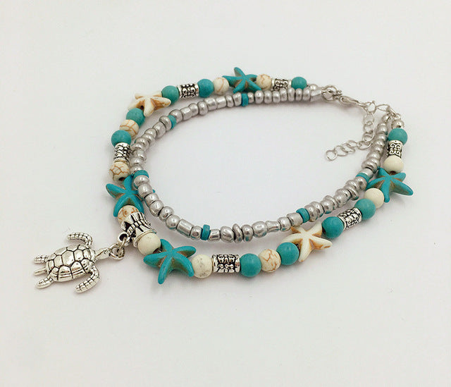 Tobilleras bohemias con cuentas multicapa de tortuga y estrella de mar para mujer