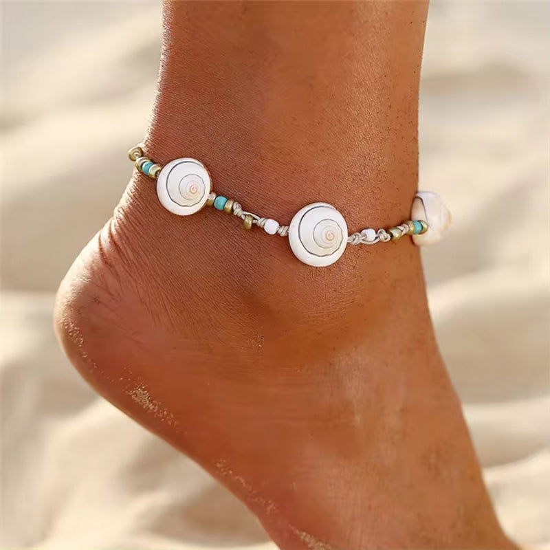 Tobilleras bohemias con conchas marinas y cauri, pulsera de tobillo con cuentas multicapa, hilo ajustable de macramé, tobilleras de conchas marinas y mejillones para mujer