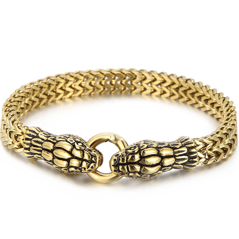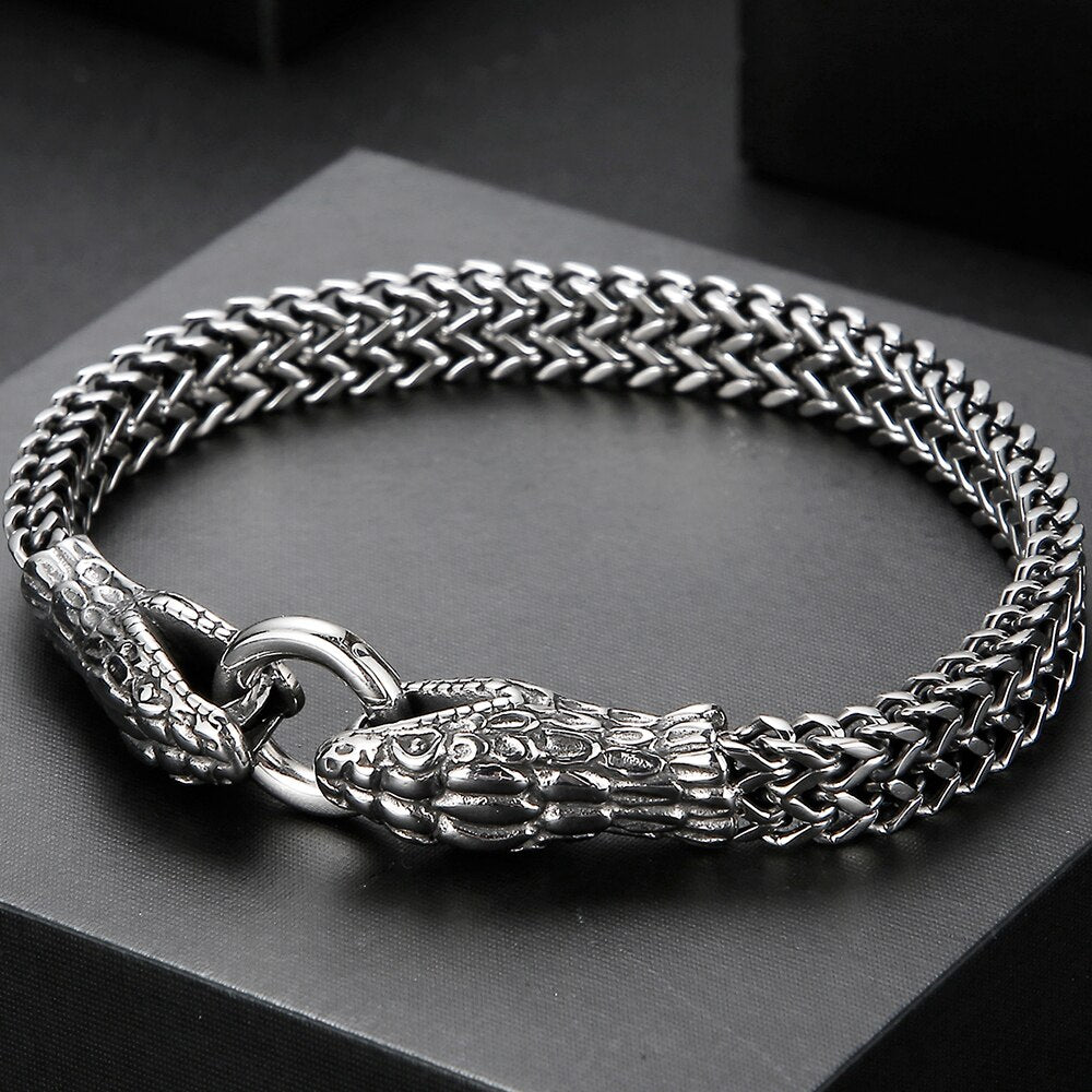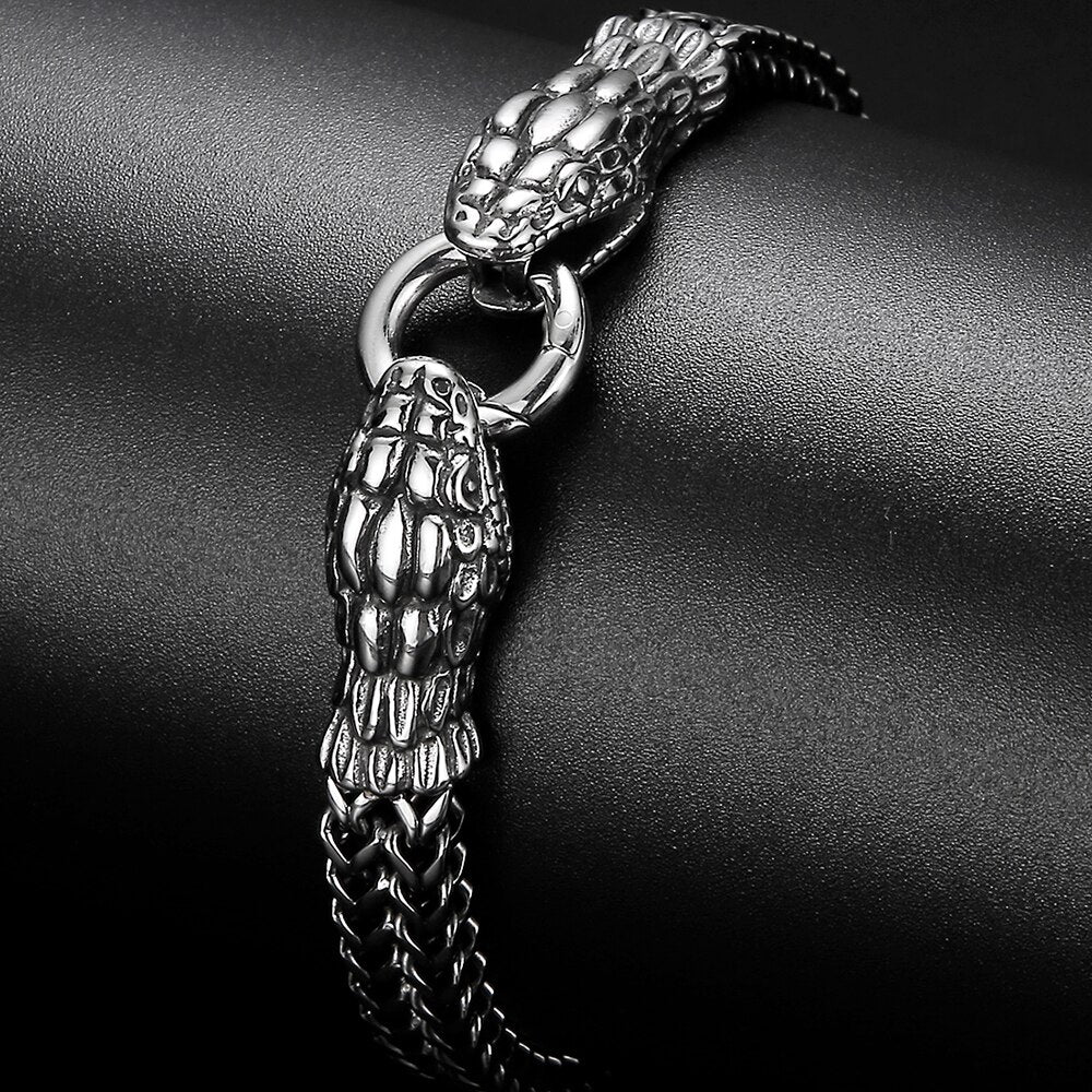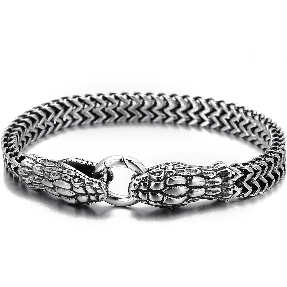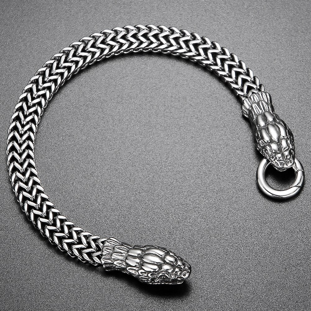 Pulsera de acero inoxidable para hombre, estilo gótico, con forma de serpiente, de 18 a 22 cm de largo y cadena de eslabones de 8 mm.