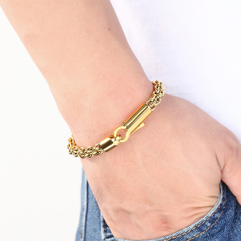 Pulsera de hombre de acero inoxidable dorado y negro con eslabones de cadena, accesorios punk para motocicleta.