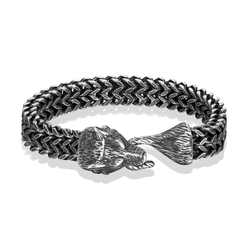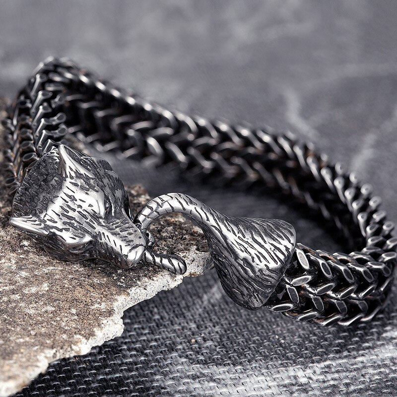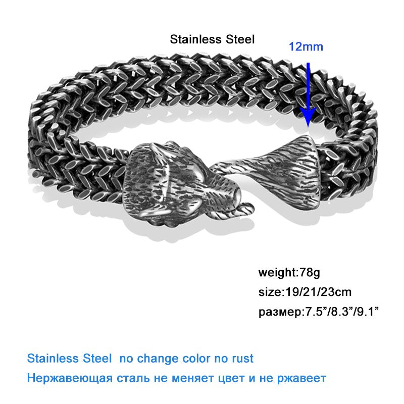 Pulsera de acero inoxidable para hombre, estilo vintage, con cabeza de lobo negra, cadena cubana, joyería de moda para hombre