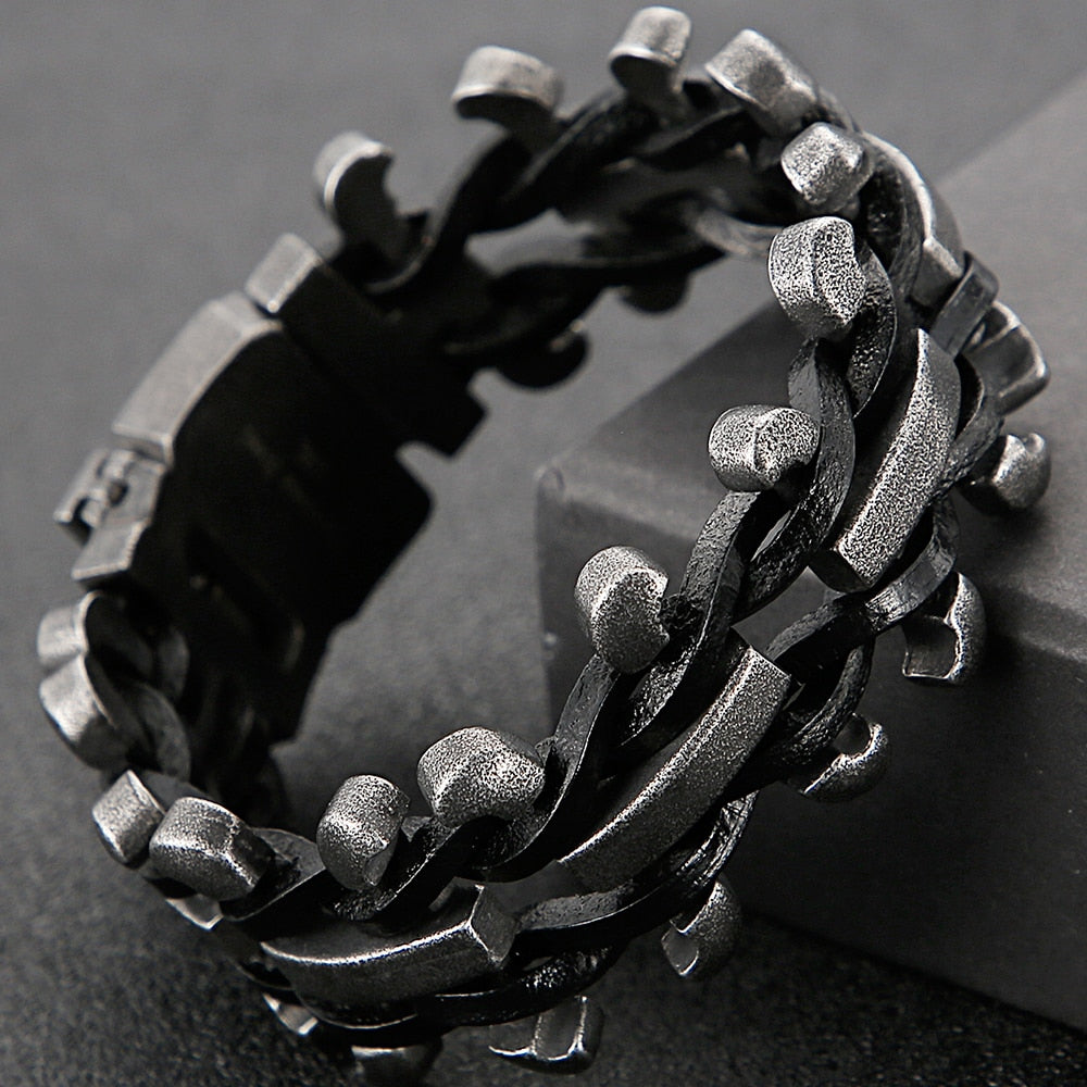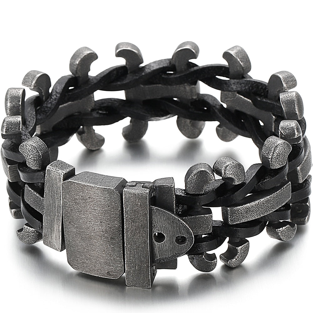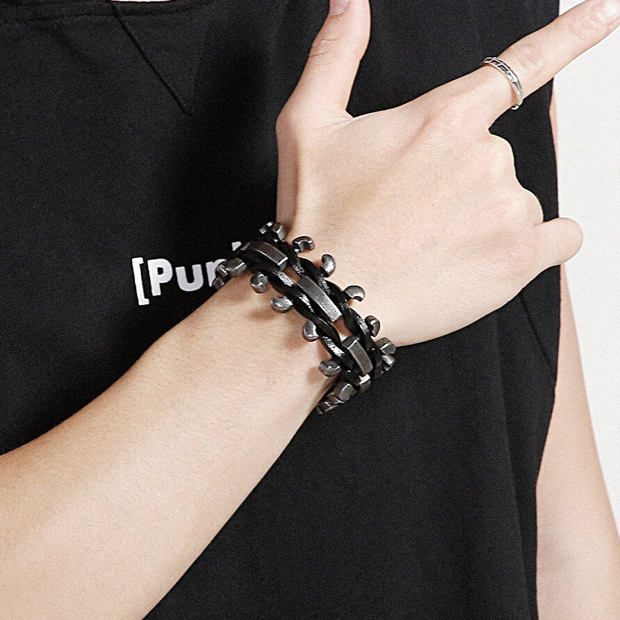 Pulsera de cuero trenzado con hebilla de cinturón para niño, brazalete de acero inoxidable para motociclista, accesorios de joyería, brazalete tipo brazalete.