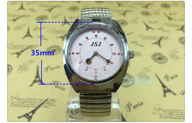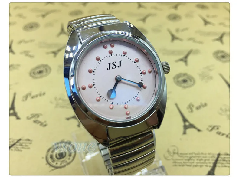 Relojes para amantes: reloj táctil para mujer con braille, correa flexible y esfera rosa