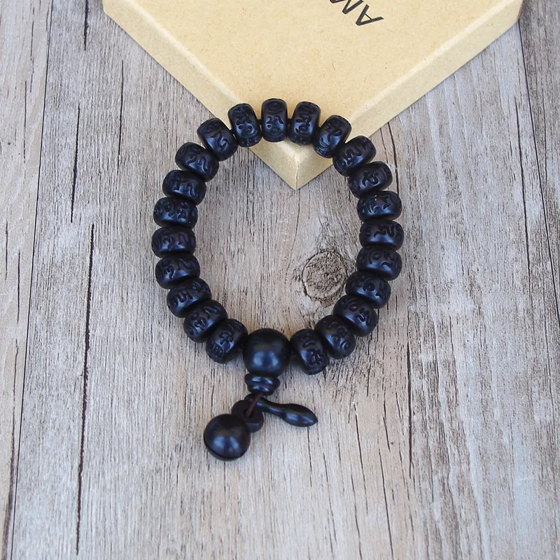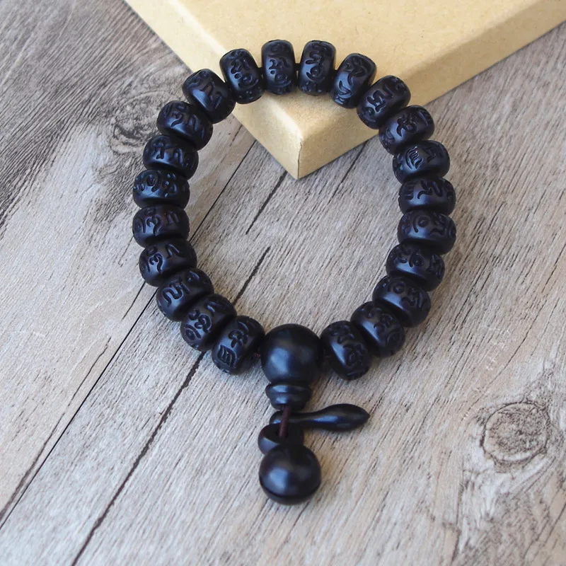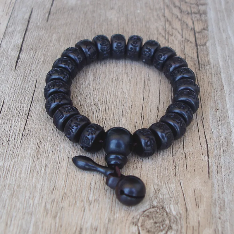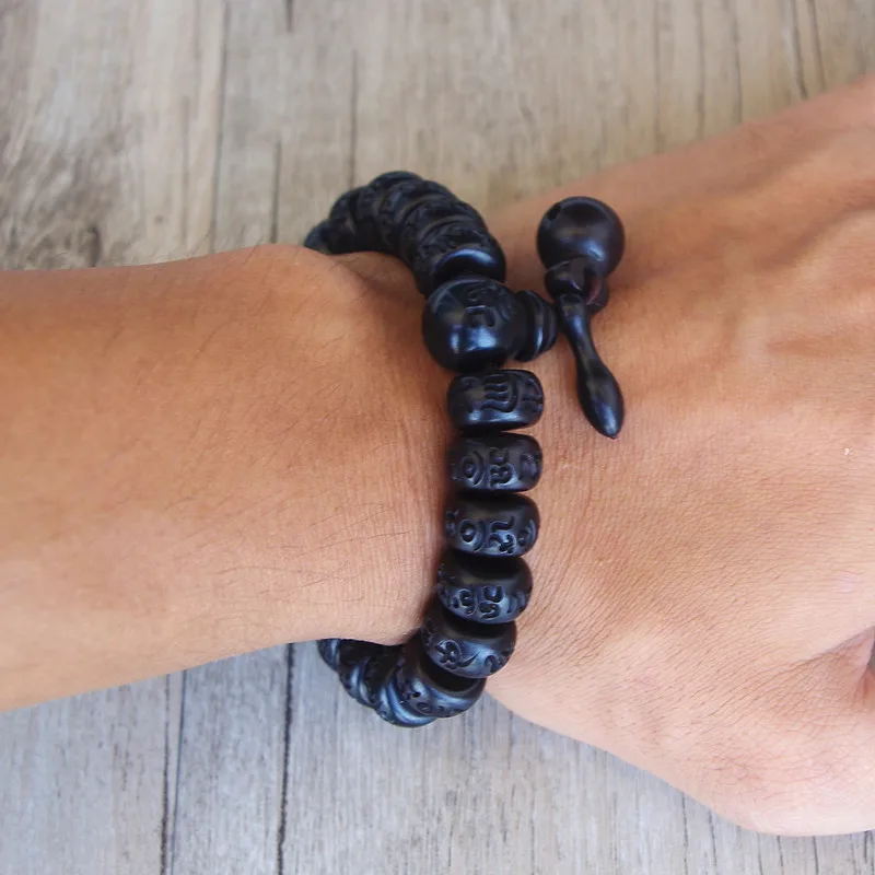Pulsera de hilo de chakra con diseño de rayo de Buda tibetano de 13/15 mm de madera de azufaifo OM Mani Padme Hum para hombre.