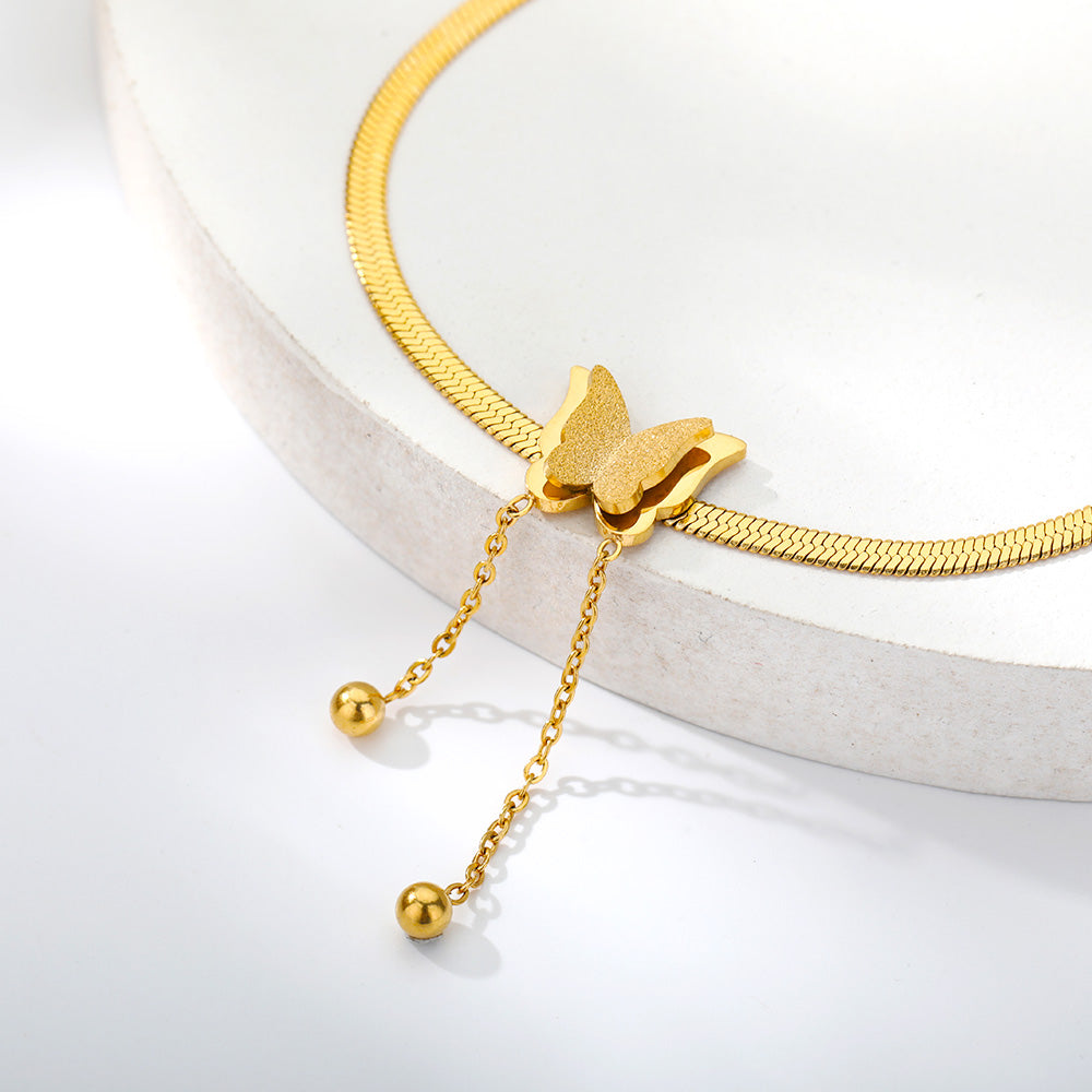 Tobilleras de mariposa para mujer, cadena de serpiente de acero inoxidable
