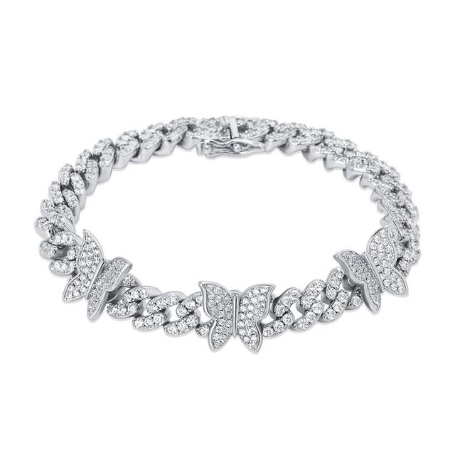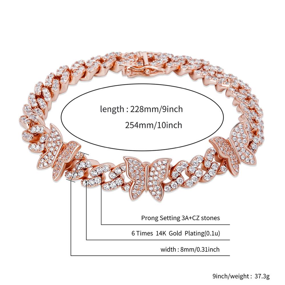 Tobilleras - Cadena de mariposa de 8 mm, tobillera de cadena cubana, tobillera con circonita cúbica helada, joyería con abalorio de hip hop para regalo, 9"10