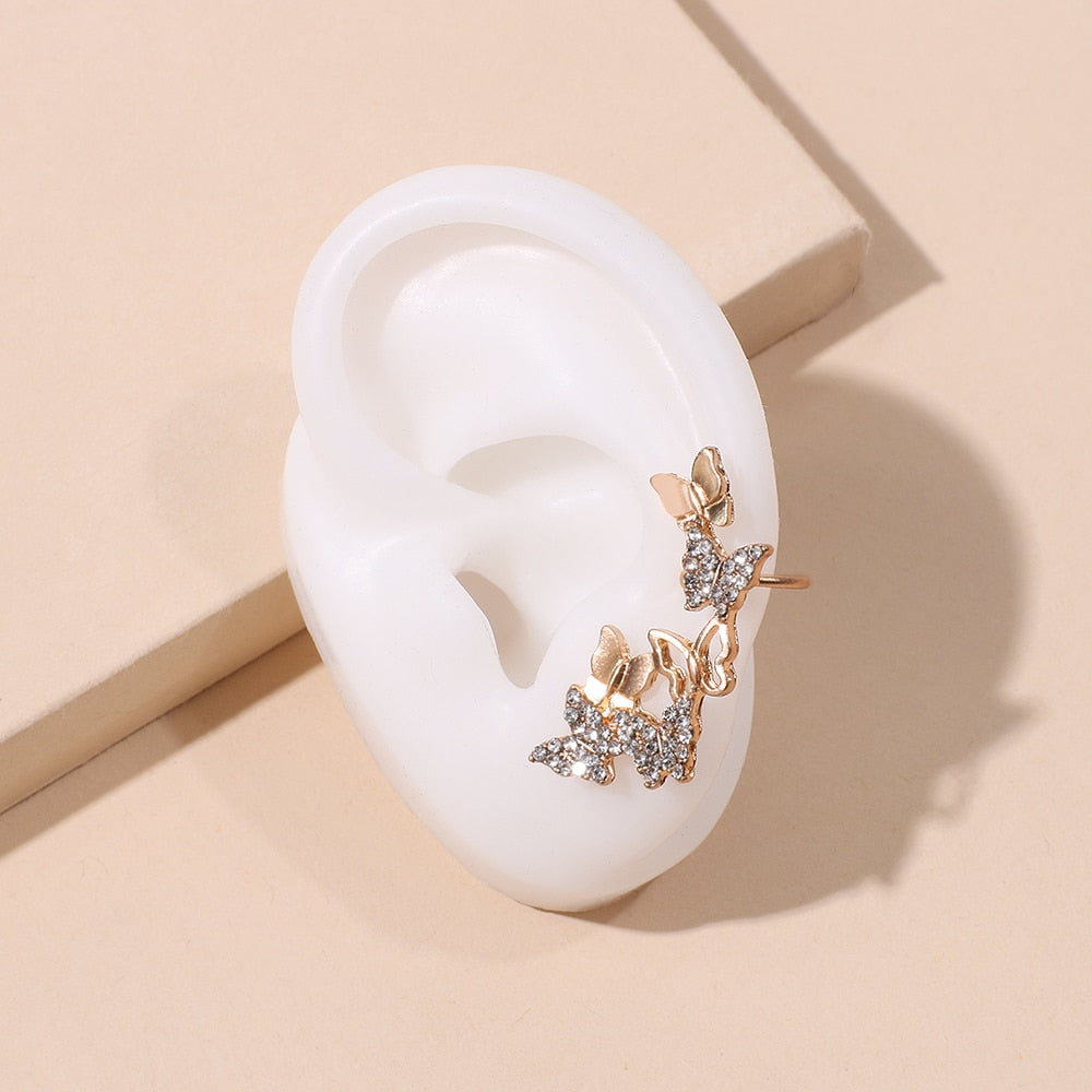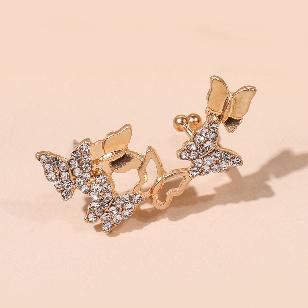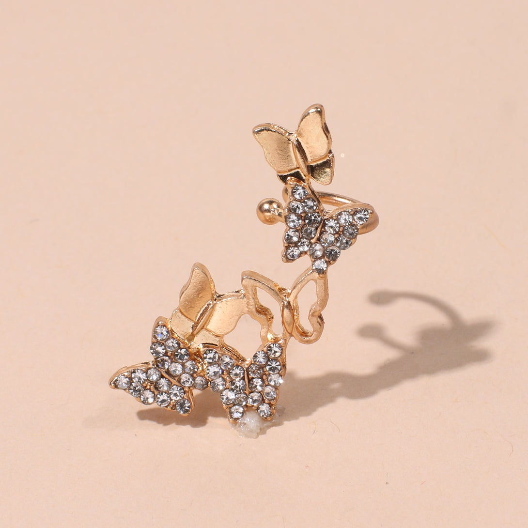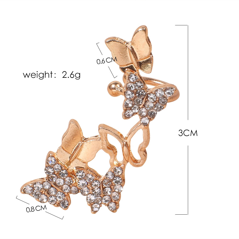 Pendientes de moda: pendientes de clip de mariposa para mujer, chapados en oro con cristal.