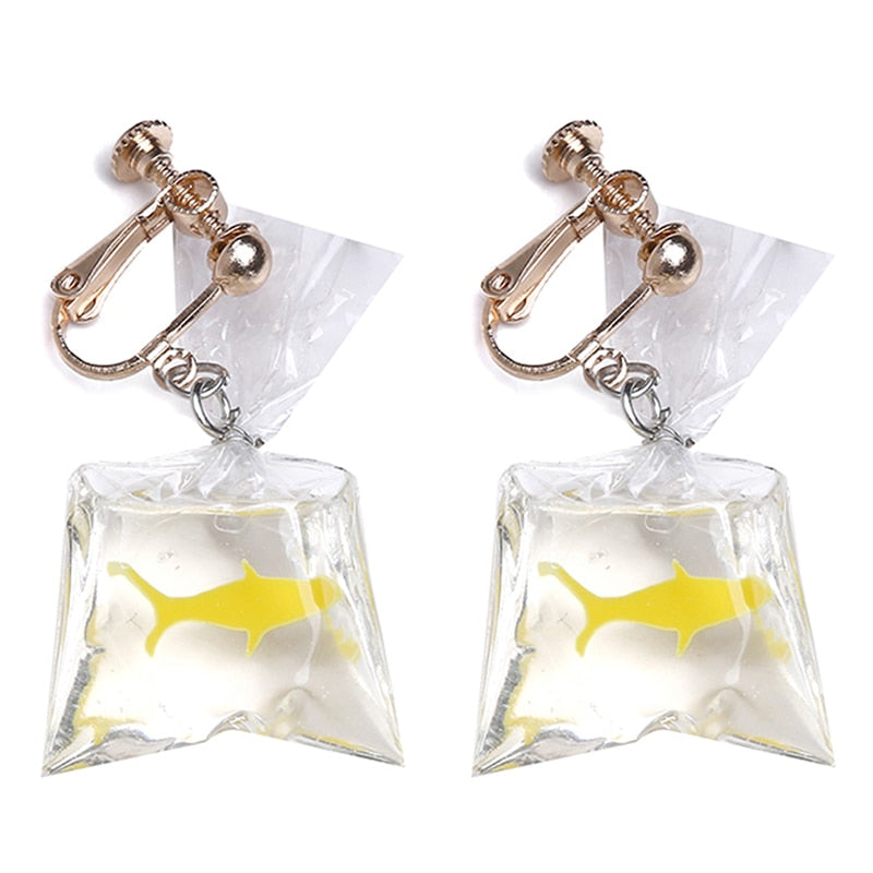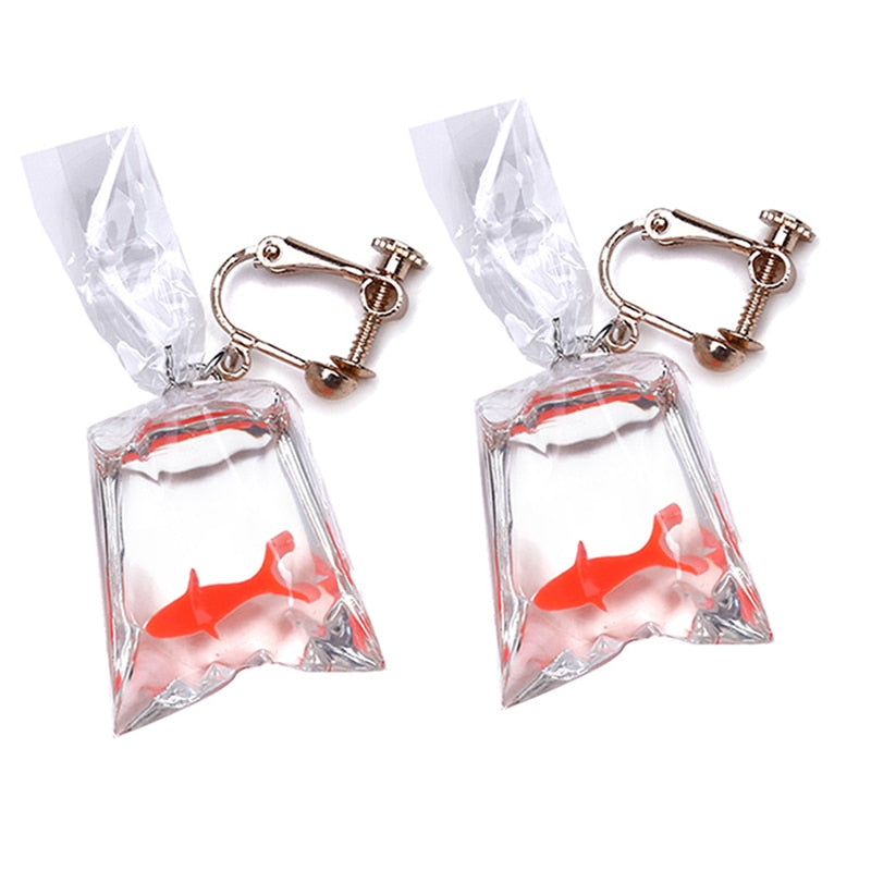Pendientes de moda con diseño de carpa, ganchos y clip para orejas de pez dorado, para mujer, sin necesidad de perforar la oreja.