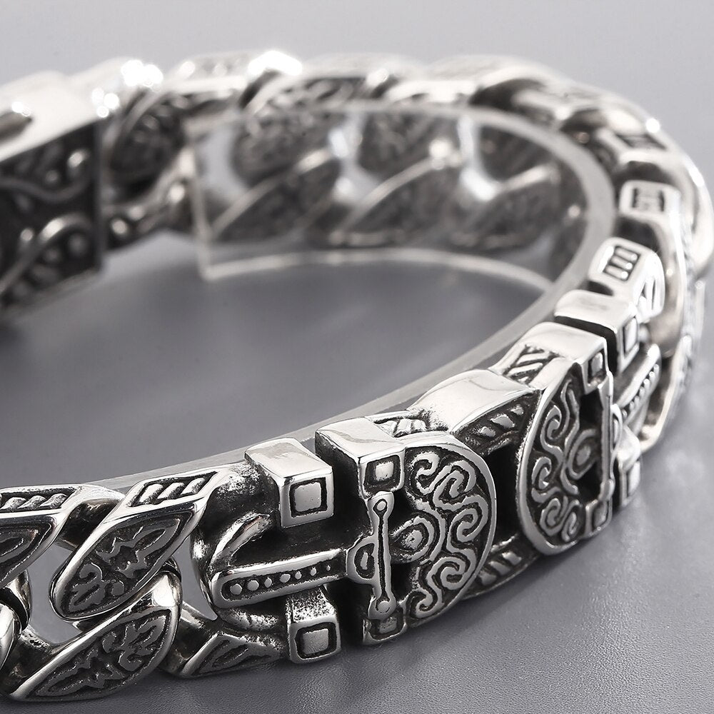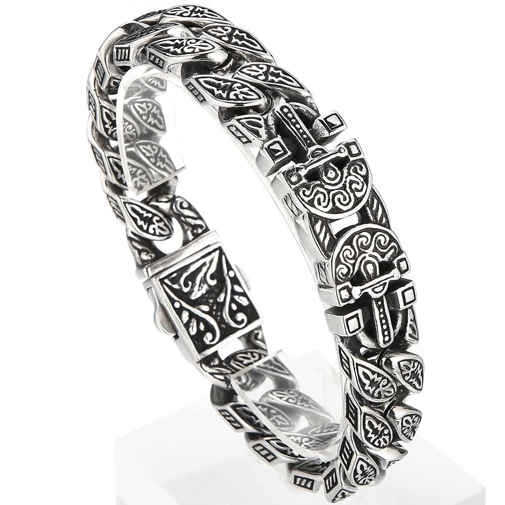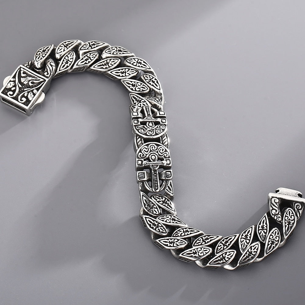 Pulseras de acero inoxidable con cruz fundida, brazalete de metal vintage, cadena pesada retro de 15 mm, pulseras para hombre, brazalete moderno para mano masculina.