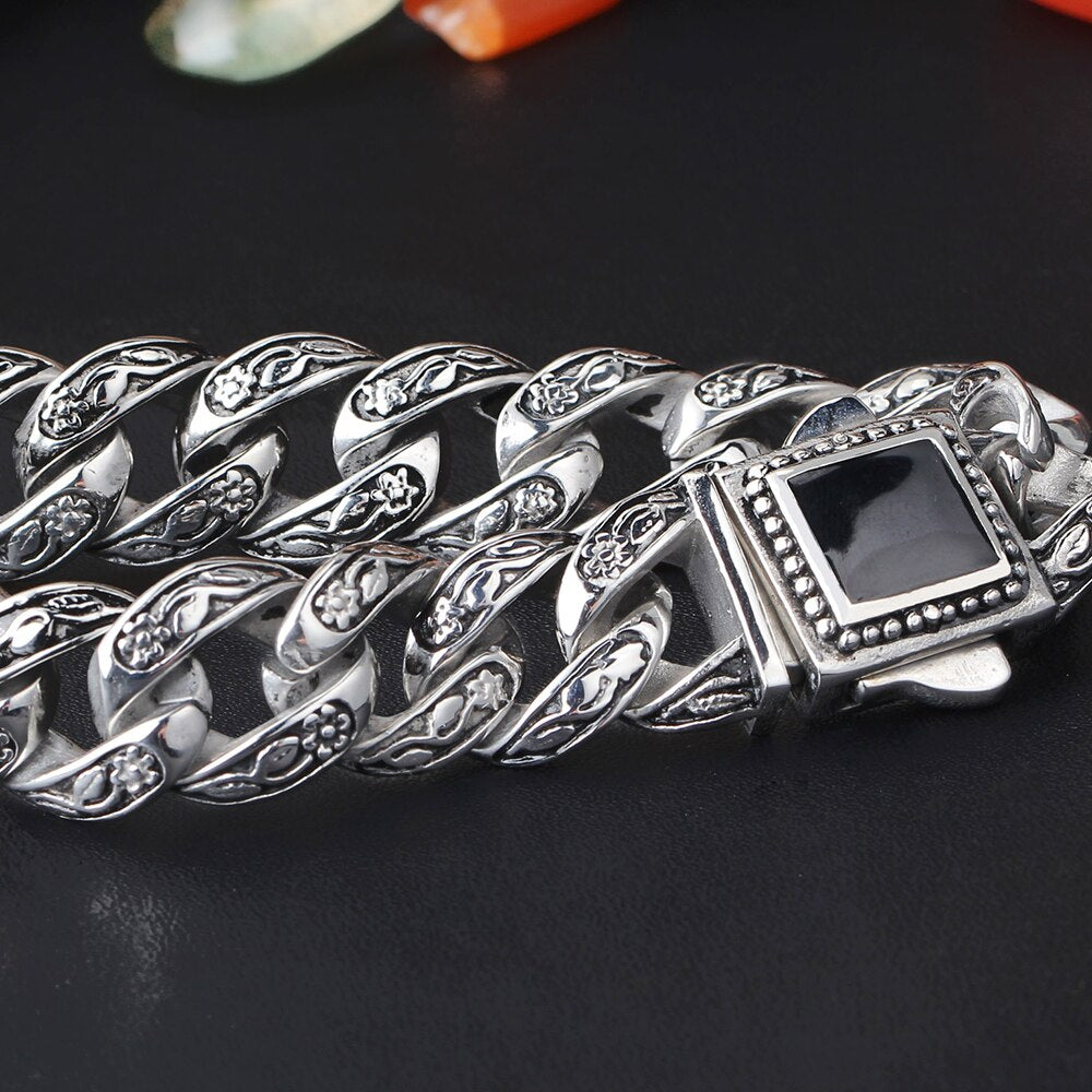 Pulsera de acero inoxidable fundido para hombre, brazalete de metal vintage retro de 15 mm con cadena de eslabones, brazalete moderno para hombre.