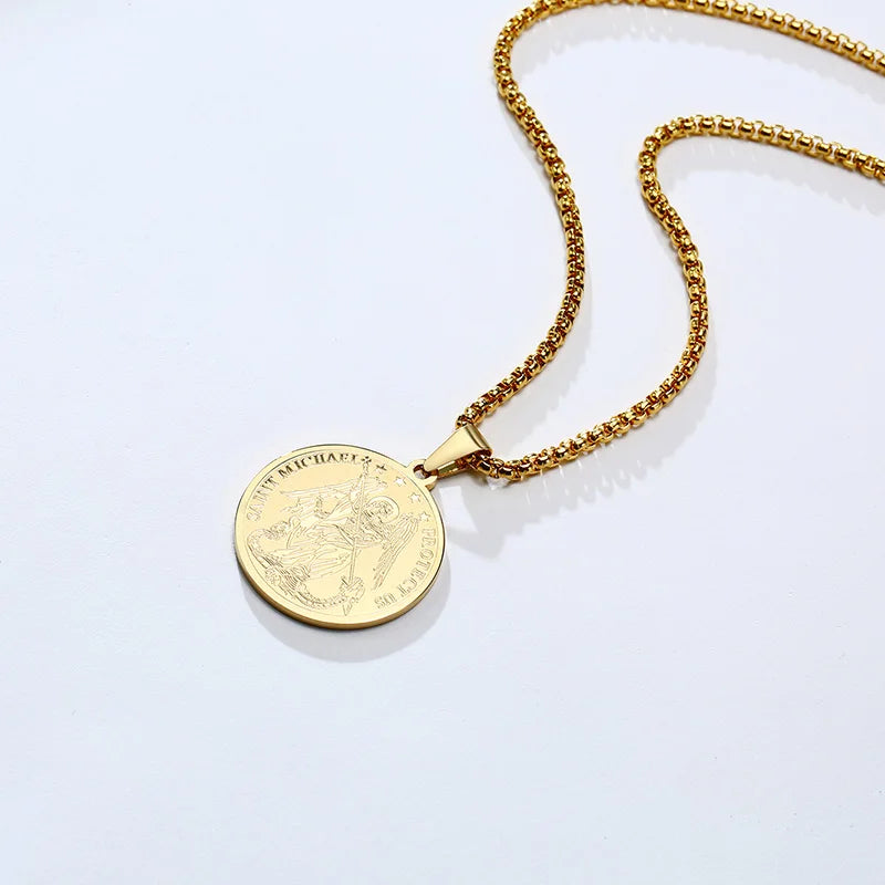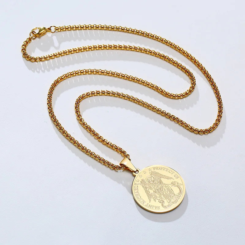 COLLAR COLGANTE MEDALLA INSIGNIA DE SAN MIGUEL FE CATÓLICA HOMBRES QUE SON COMO DIOS
