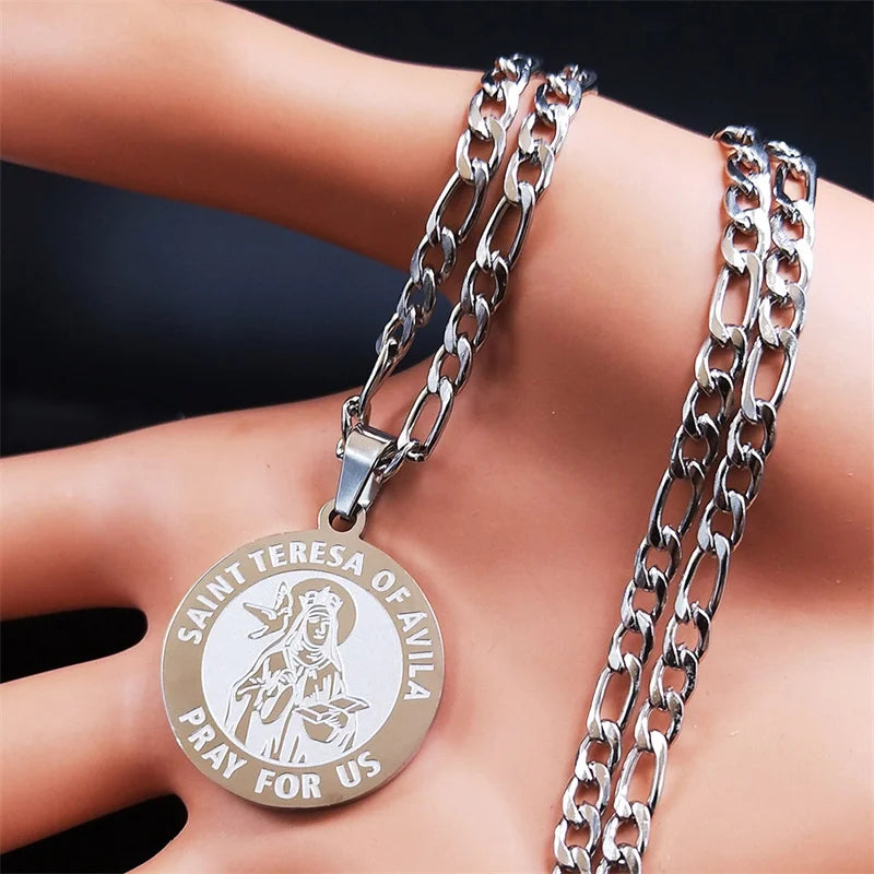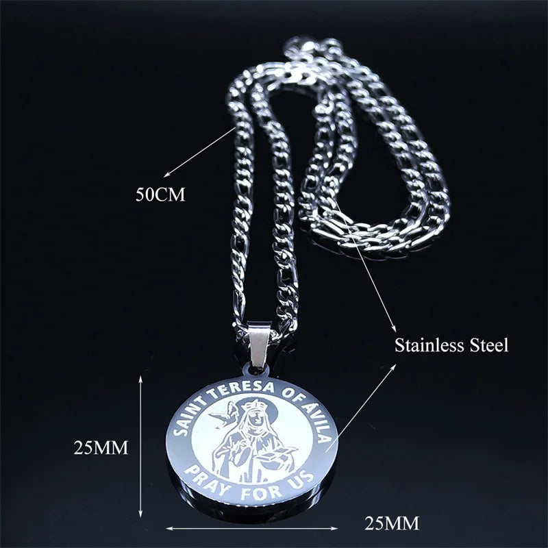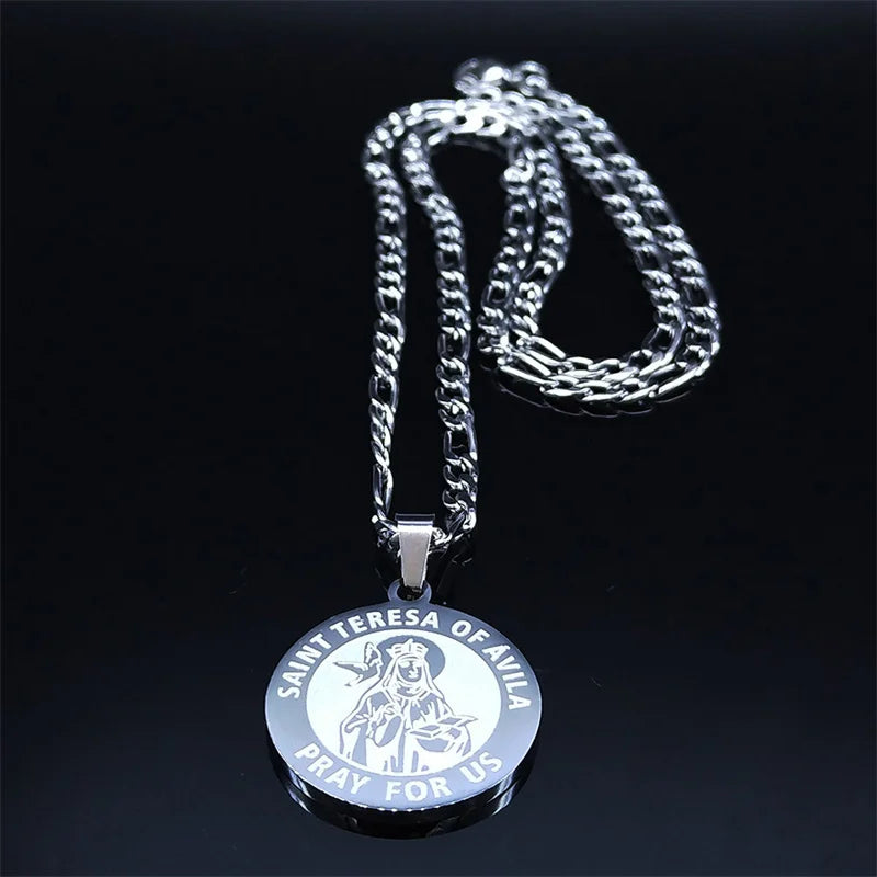 Collar de acero inoxidable con la imagen de Santa Teresa de Ávila para mujer y hombre.