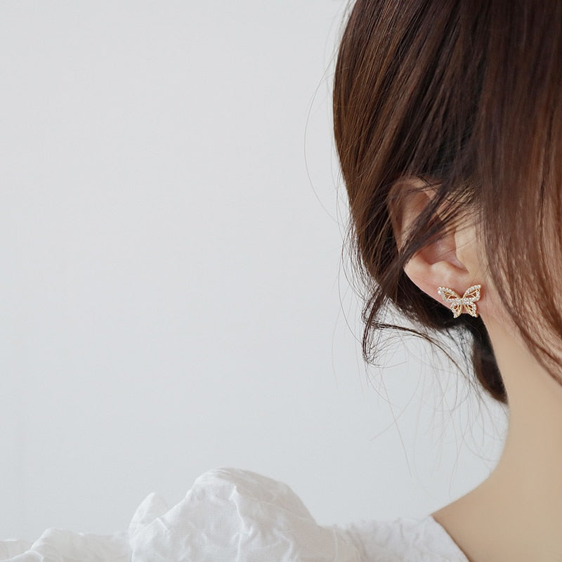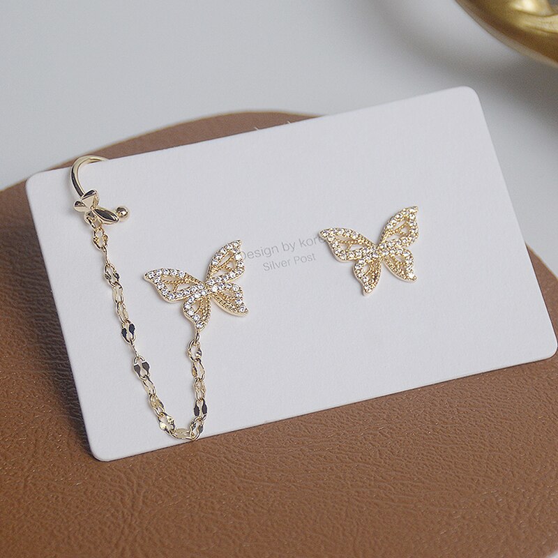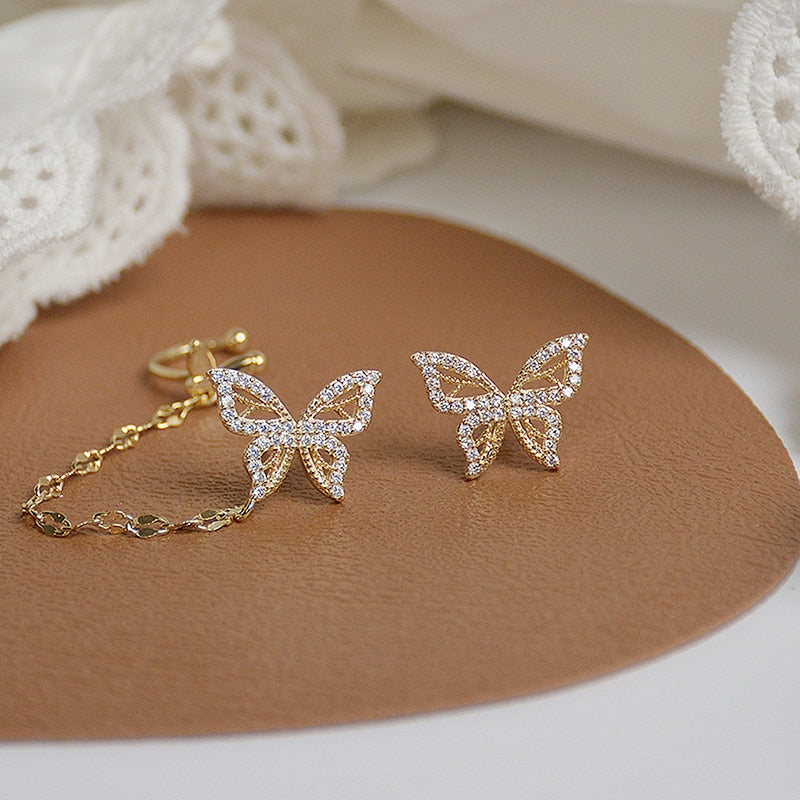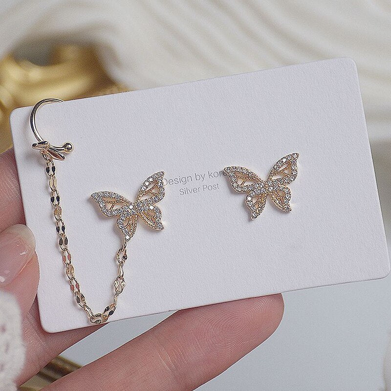 Pendientes de moda con dije de mariposa de circonita de oro auténtico de 14 quilates para mujer, sin perforación, elegantes pendientes de clip con hueso de oreja, joyería de compromiso, colgante.