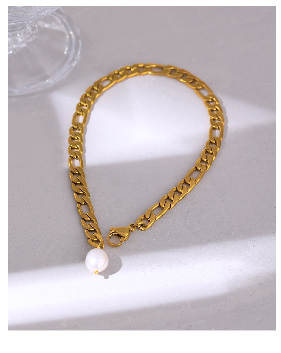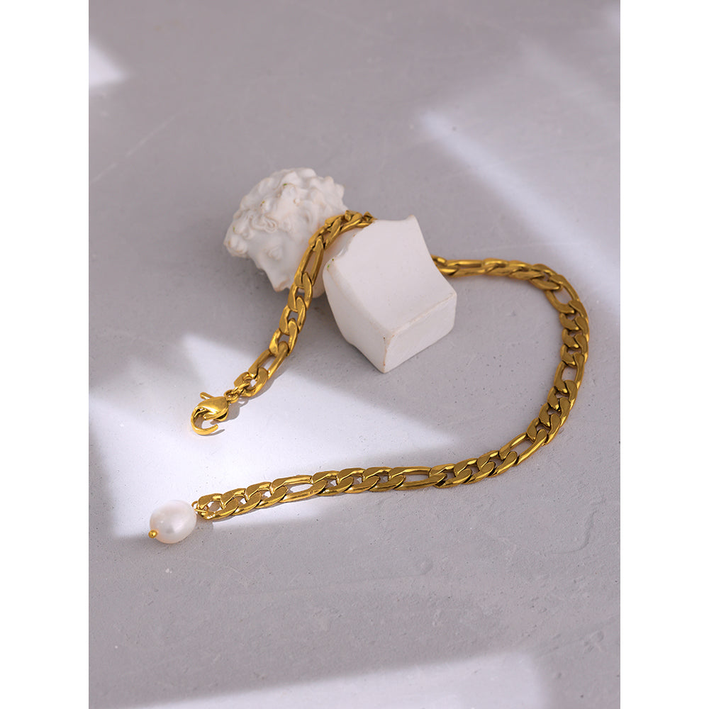 Tobilleras - Tobillera con dije de cadena Figaro de perla natural, acero inoxidable 316L, metal pesado, para playa, accesorios para pies descalzos, regalo