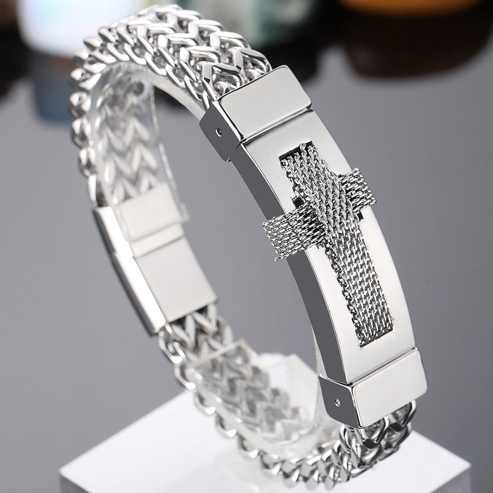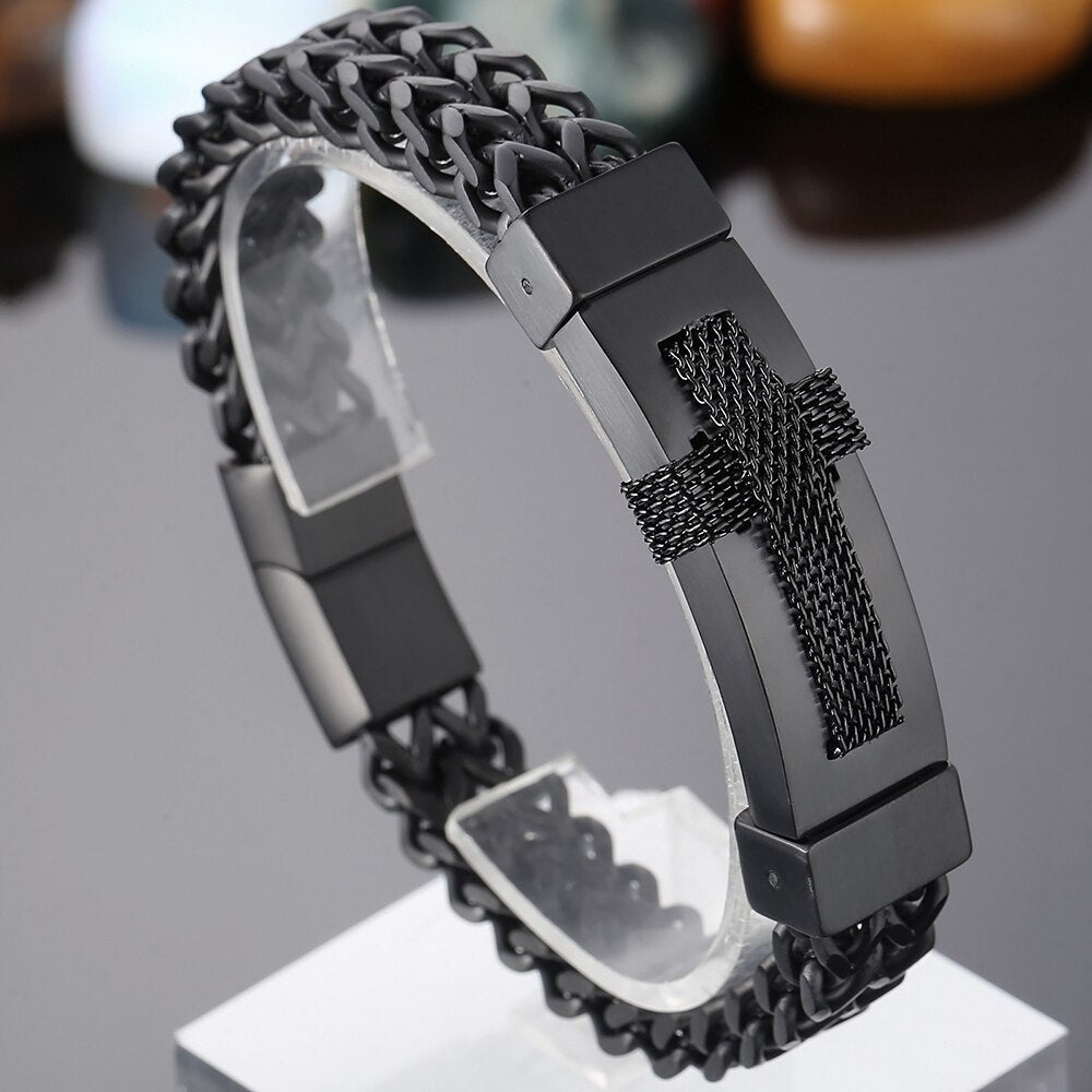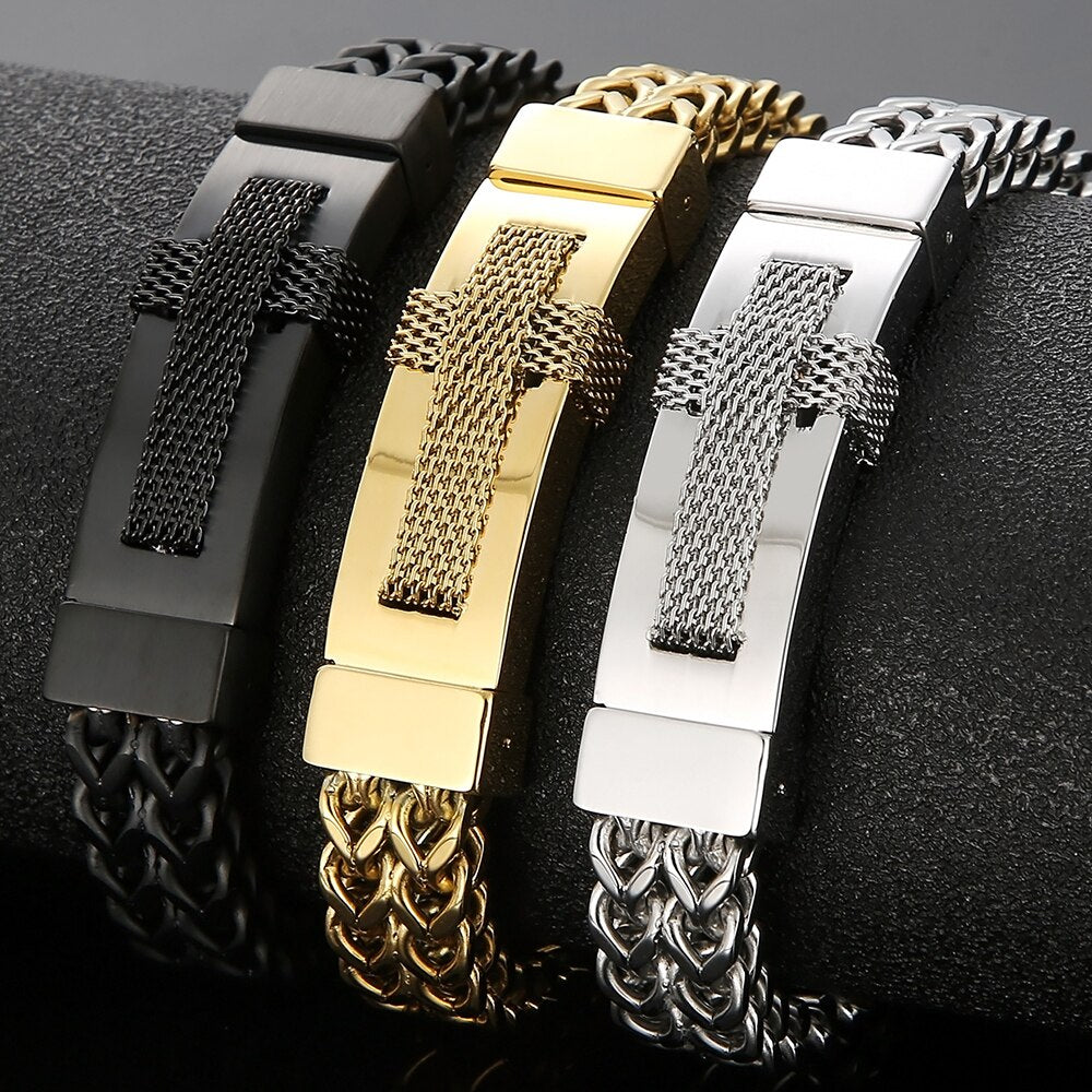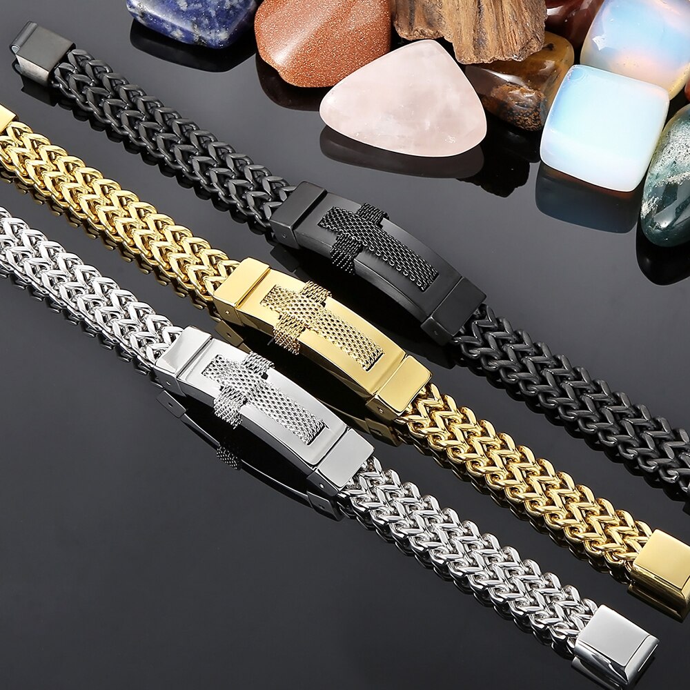 Pulsera de cruz cristiana para hombre, de acero inoxidable chapado en oro, pulseras para hombre, accesorios de joyería para hombre.