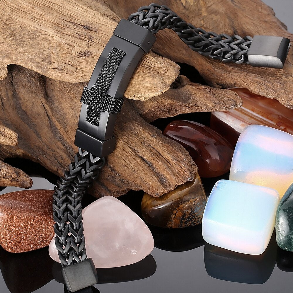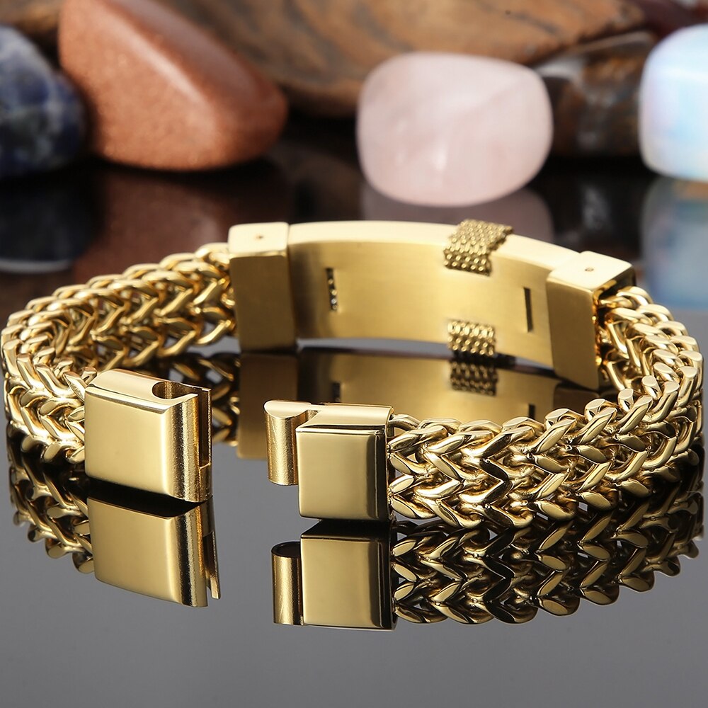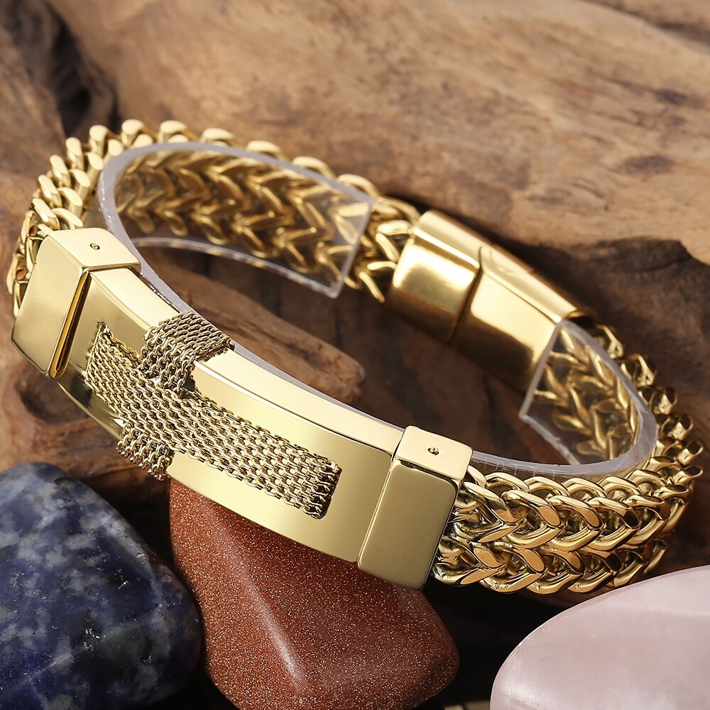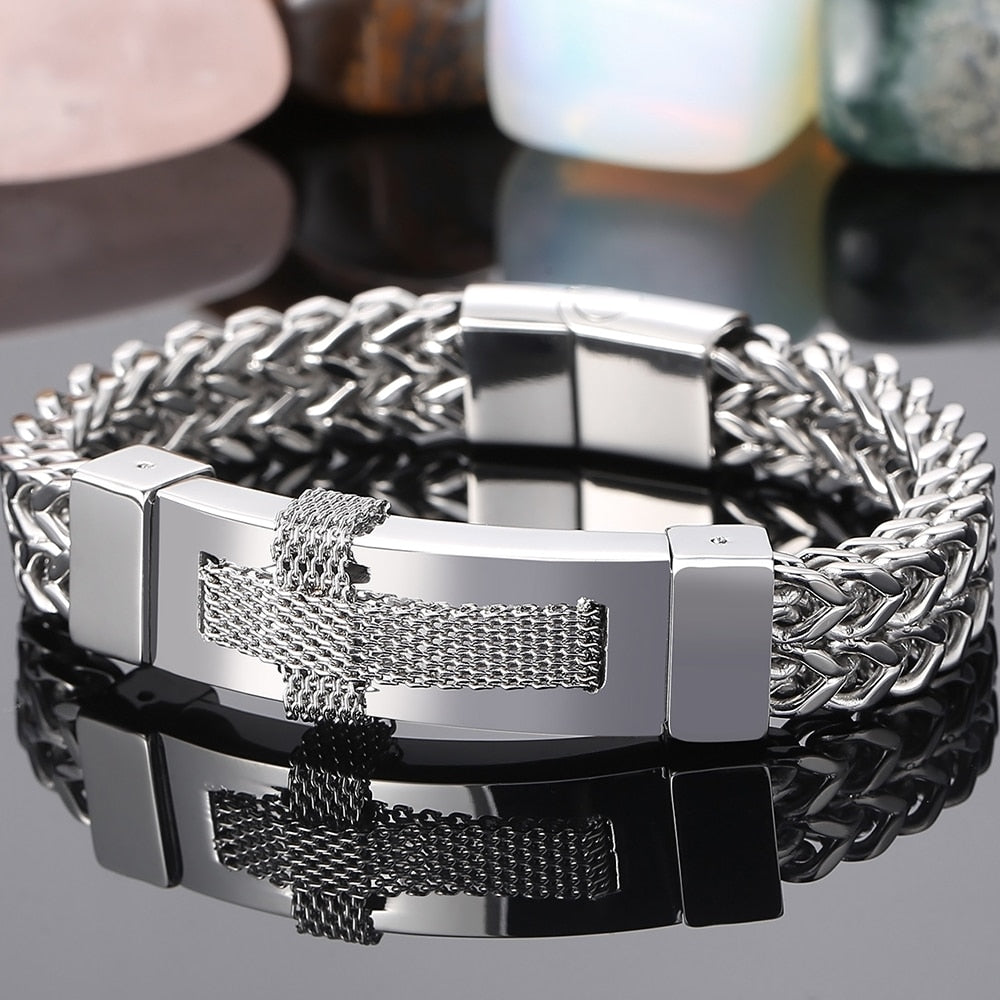 Pulsera de cruz cristiana para hombre, de acero inoxidable chapado en oro, pulseras para hombre, accesorios de joyería para hombre.