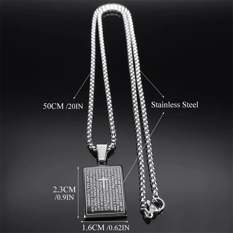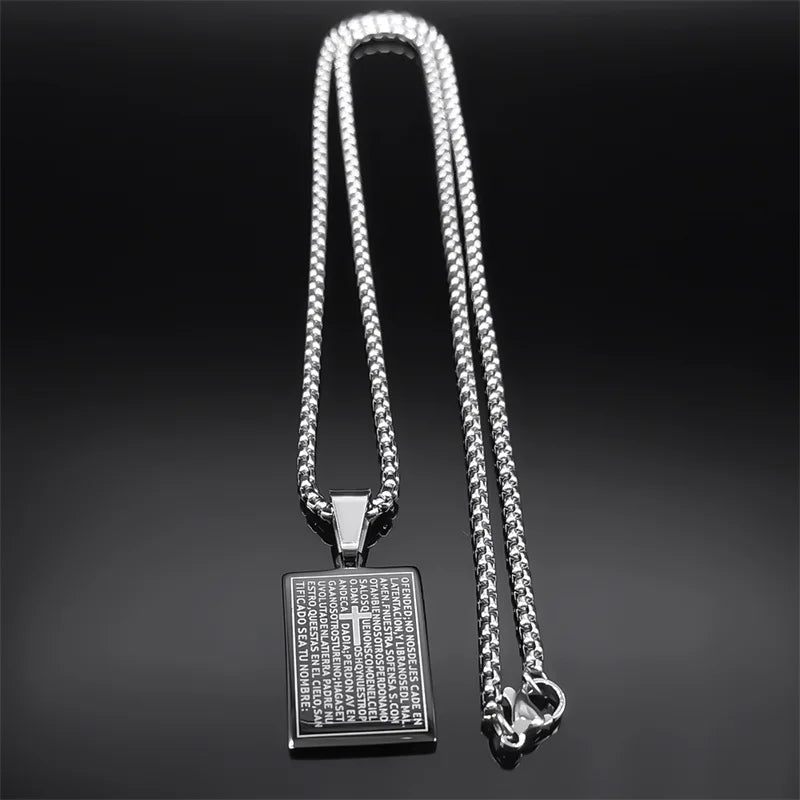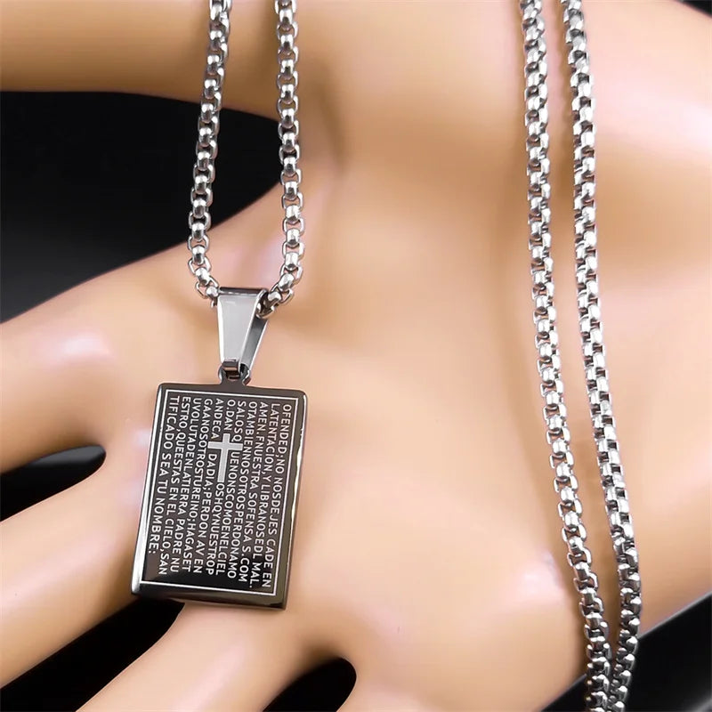 Collar con cruz cristiana y oración del Señor para mujer y hombre, cadena religiosa de acero inoxidable